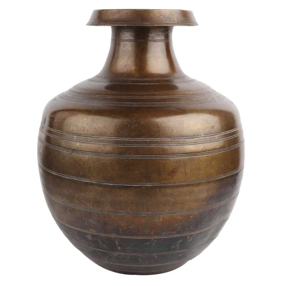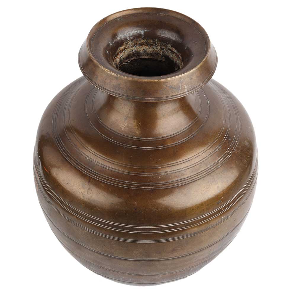 Brass water pot handcrafted by master craftsman in traditional manner. It has engraved rings design engraved on the pot makes it the ideal showpiece, wedding gift, anniversary gift, house warming gift, flower pot, planter pot. Gift for your near and dear ones.