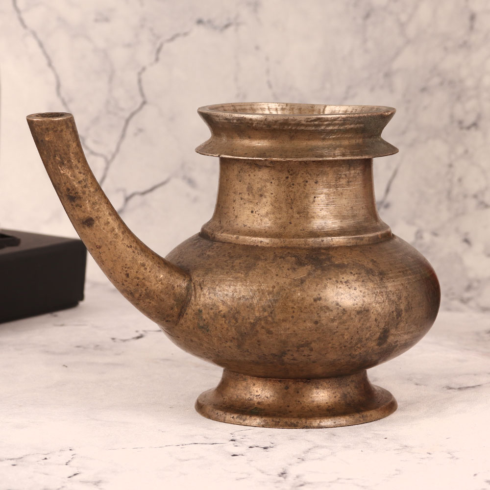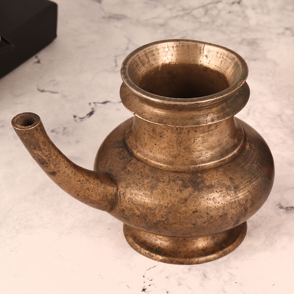 Buy a Brass Water Pot with Spout online which is meticulously crafted by talented Indian artisans in a rich antique brown finish. This exquisite piece is a celebration of tradition, quality, and artistry, making it a versatile addition to your surroundings. Handcrafted from high-quality brass, this water pot showcases the artisan’s dedication to detail and craftsmanship. Its intricate design is a testament to the rich cultural heritage of India. This elegant pot finds its place gracefully in homes, offices, restaurants, hotels, cafes, and shops, adding a touch of sophistication to any setting. The pot's utility extends beyond its aesthetic appeal. It serves as a sacred vessel for holy water in temples, during rituals, Hindu ceremonies, and havan ceremonies, honouring traditions and spiritual practices. Alternatively, it can be repurposed as a charming flower pot, infusing life and beauty into your decor. For collectors with an eye for vintage treasures, this brass water pot is a must-have addition. Its antique brown finish and handcrafted charm make it a prized collectible. Furthermore, it makes for an ideal gift for your family, friends or relatives on special, festive, or auspicious occasions, conveying your appreciation for both tradition and artistry. Embrace this embodiment of culture and craftsmanship in your space and elevate your surroundings with this Brass Water Pot with Spout.