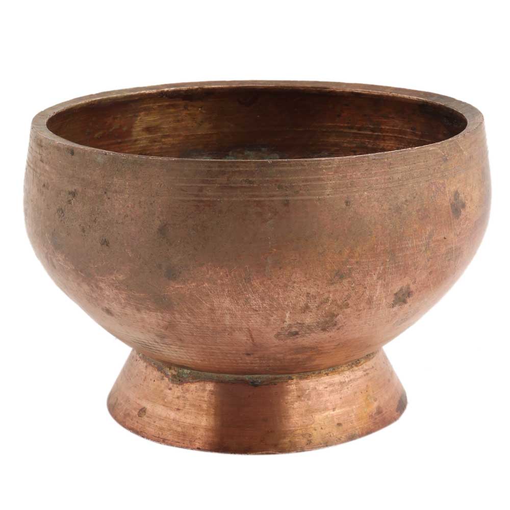 This handmade brown brass bowl with an elevated round base gives an addition to your home decor or can be used for the decoration of restaurants or bars.