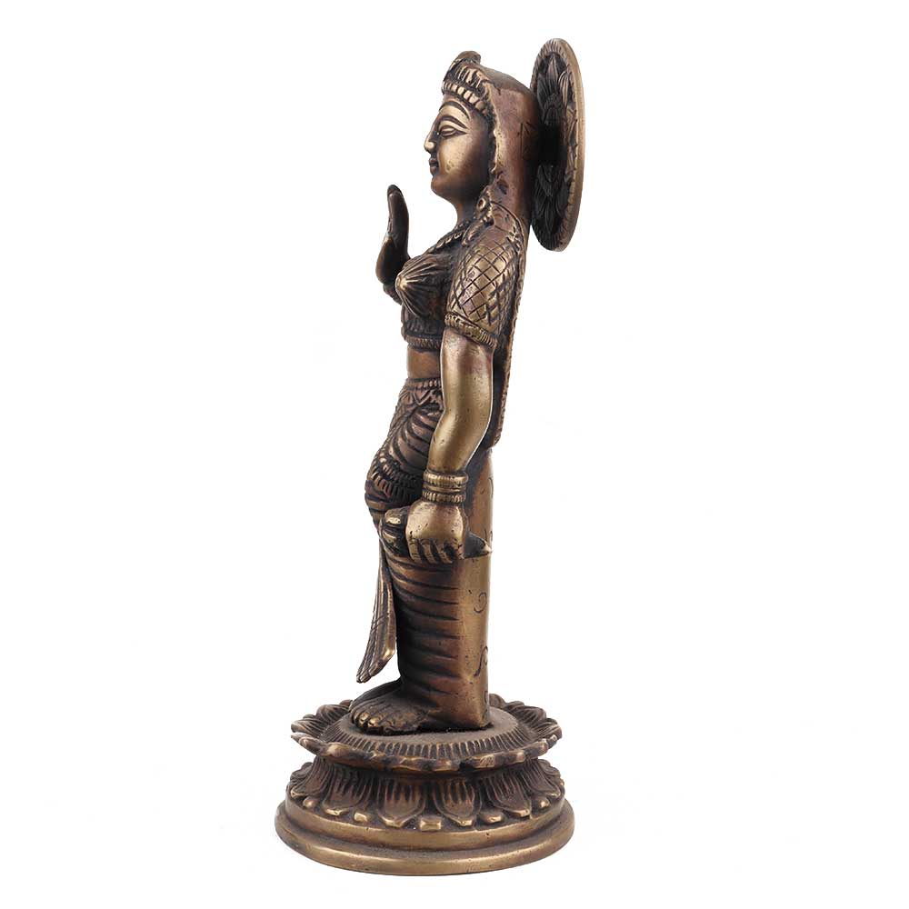This decorative Indian goddess murti in Brass can be used as a Pooja Mandir interior decoration accessory, table decoration, or showcase decoration. It is the Best Gift for Marriage Anniversary, Parents, Mothers day, Wedding Return Gift.