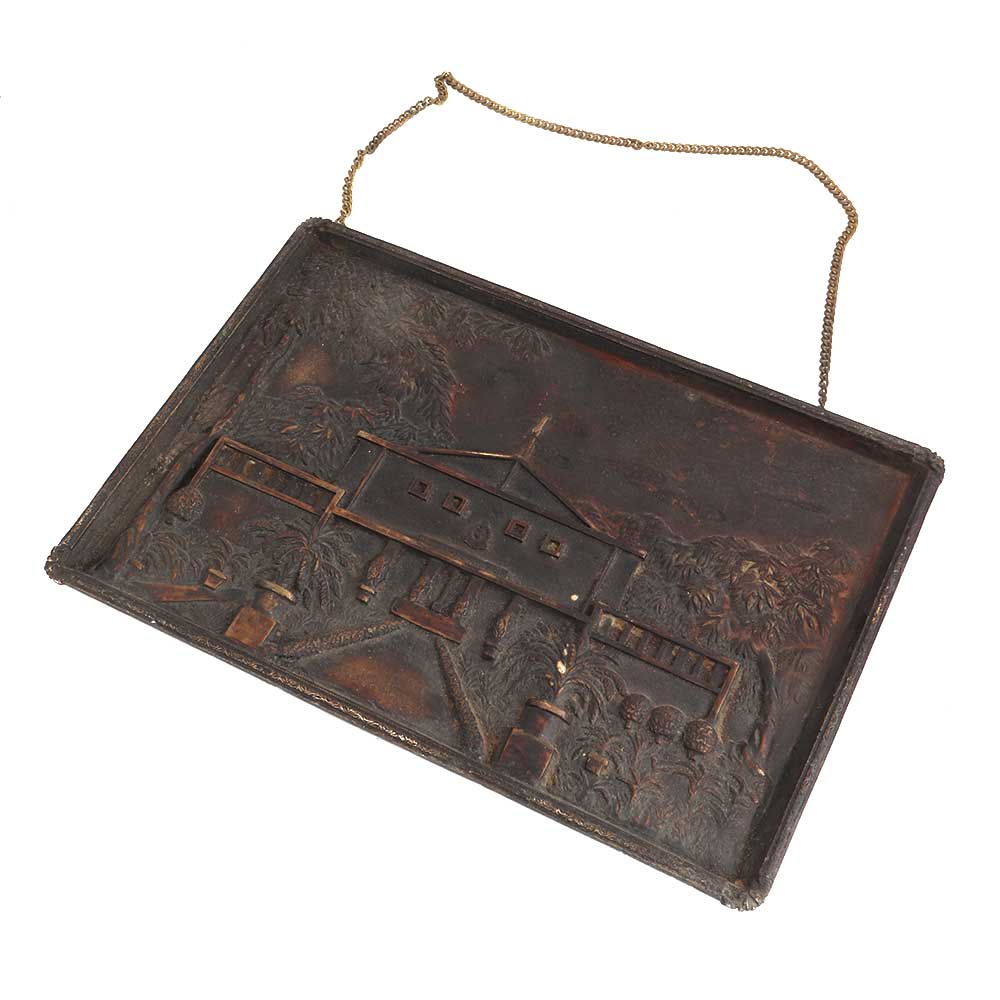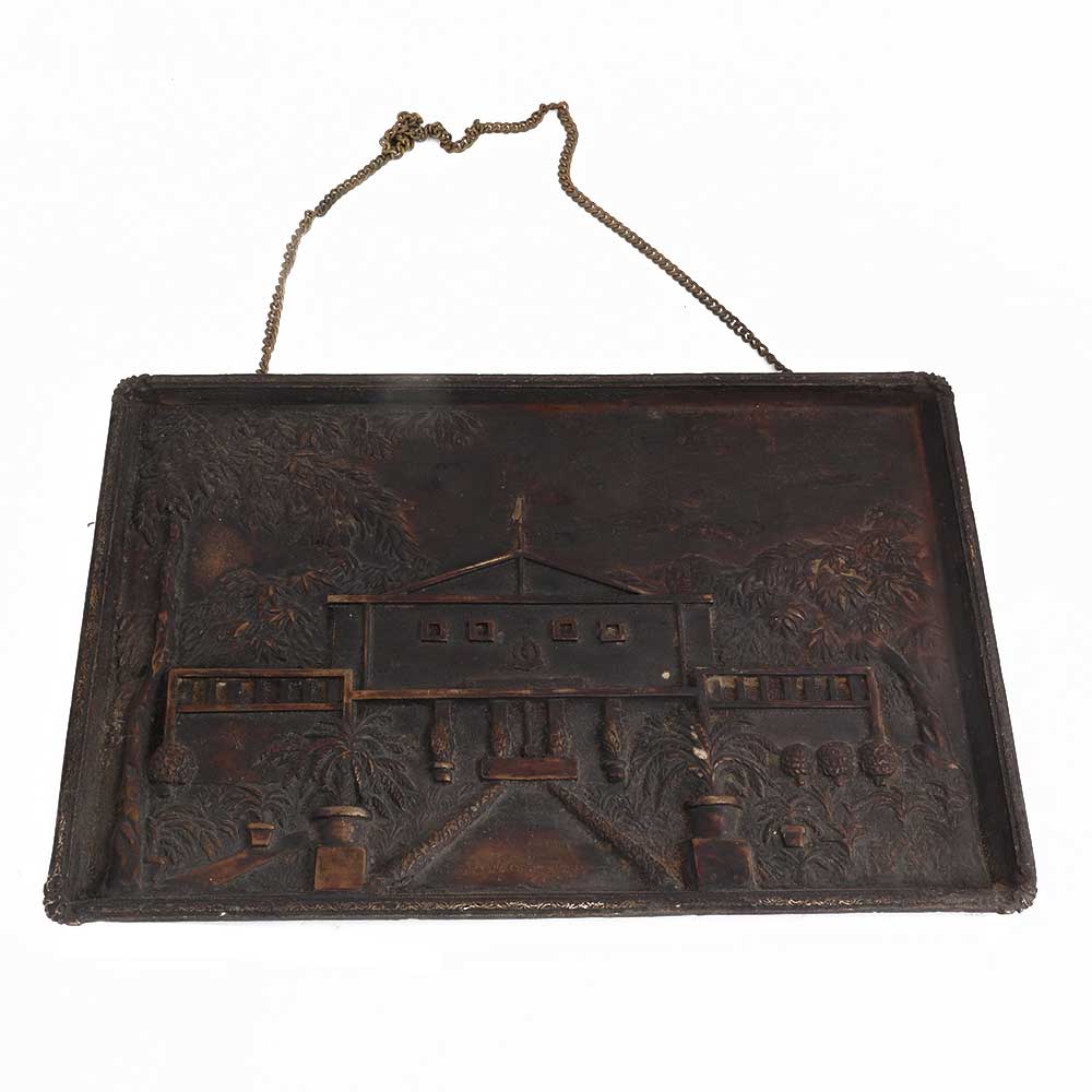 This handmade antique style brass wall hanging with a landscape design embossed on it by master craftsmen. A lovely wall hanging for your living room, hallway, foyer area or bedroom.