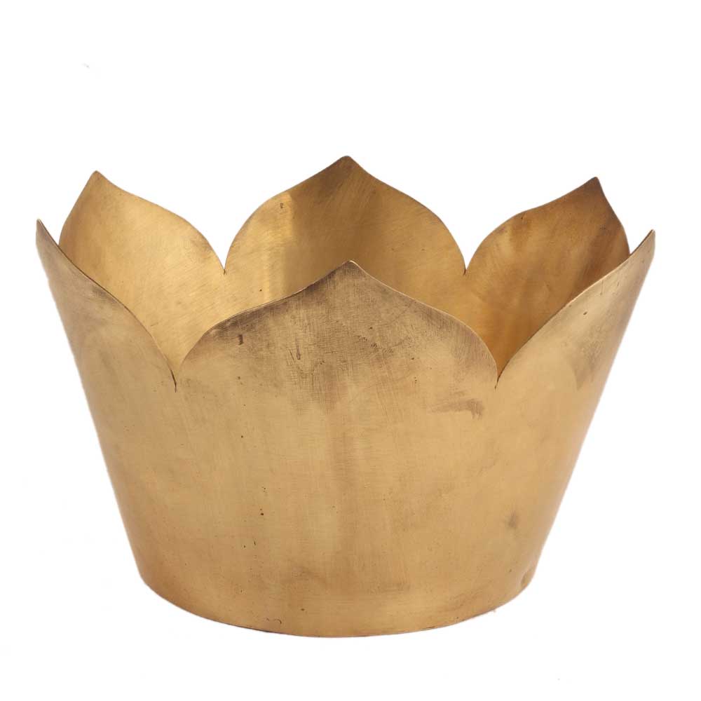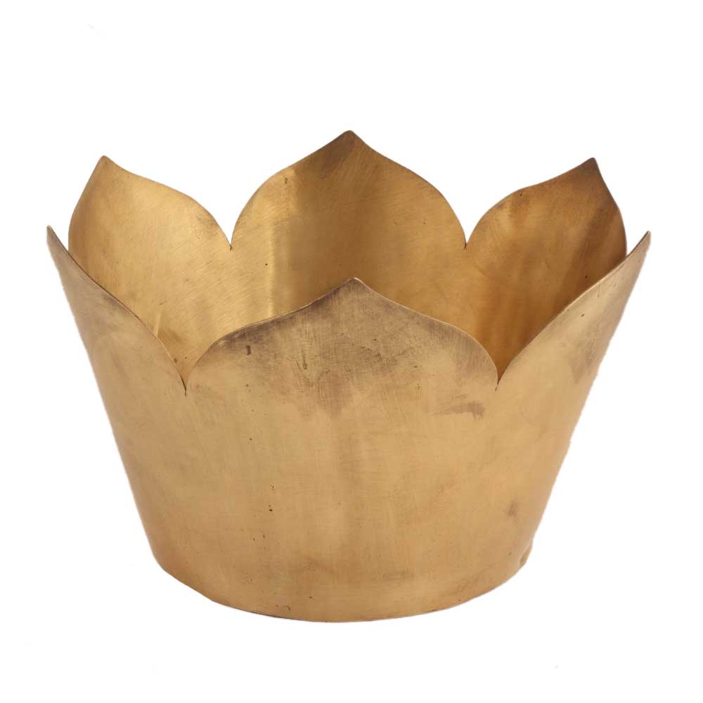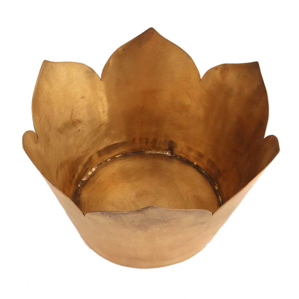 Handmade round lotus-shaped flower pot in golden brass looks attractive for festive decoration and home decor items. It is the best Diwali gift idea, a wedding gift idea for your loved ones.