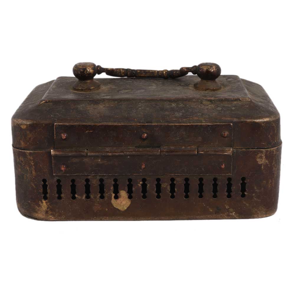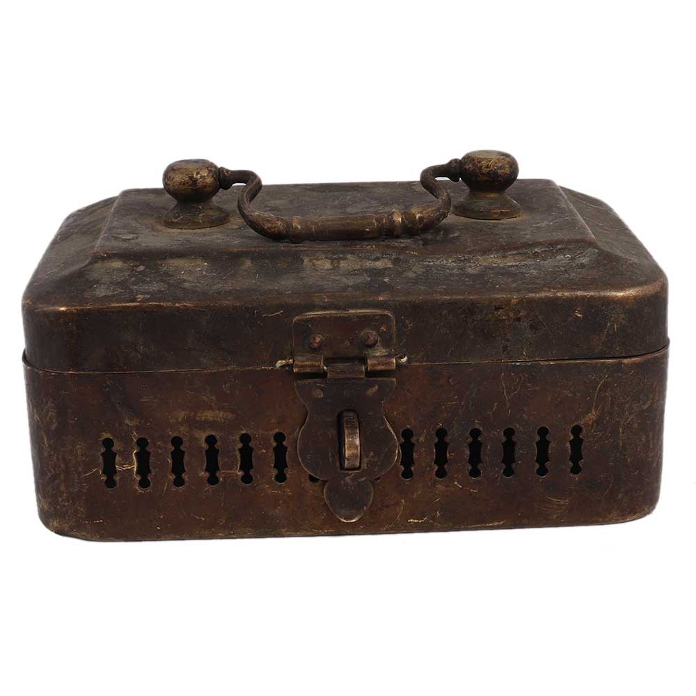 This handcrafted brass storage box provides a lovely touch to your home's decor and features a strong latch that can be locked with a padloc. It can also be used to store jewels and mementos. This item is solely meant to be used as a decoration.