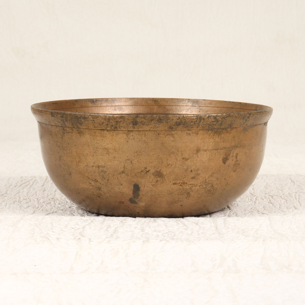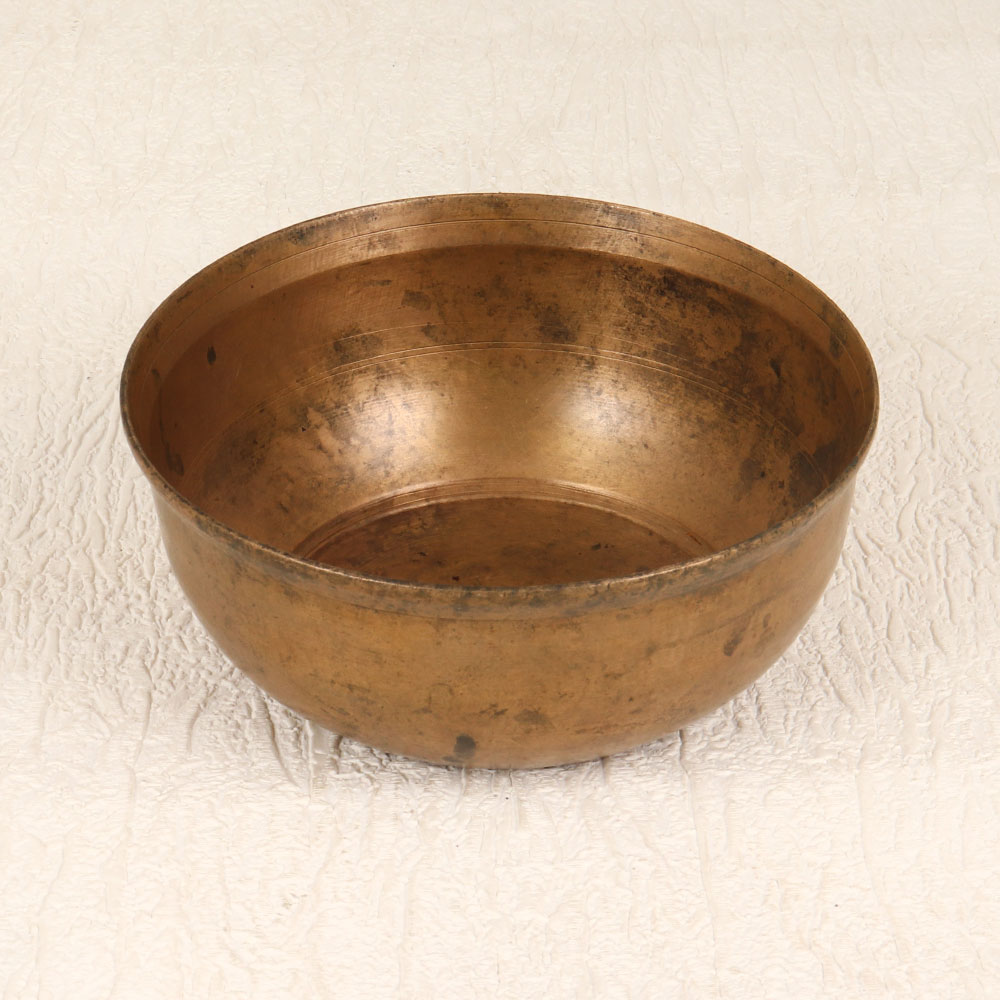 Buy a Vintage Brass Holy Bowl online that is a sacred artefact meticulously crafted by skilled Indian artisans in the time-honoured tradition of South Indian Art. This exquisite piece is cast from high-quality brass, showcasing a stunning antique brown finish that adds an aura of timeless elegance. Ideal for prayer, rituals, and havans, this handmade bowl serves as a cherished item for spiritual practices, making it a perfect addition to your home, office, restaurant, hotel, or cafe prayer room. Its versatile design also allows it to be displayed as a decorative accent, enhancing the aesthetic appeal of any space. The Vintage Brass Holy Bowl transcends its utilitarian purpose and becomes a coveted item for collectors of vintage artefacts. Its rich history and authentic craftsmanship make it a unique and valuable addition to any vintage collection. Furthermore, this holy bowl is not just an artefact; it is a thoughtful and meaningful gift for your family, friends or relatives on special, festive, or auspicious occasions. Imbued with cultural significance and artisanal excellence, this handmade masterpiece is a symbol of devotion and a testament to the artistry of Indian craftsmanship.