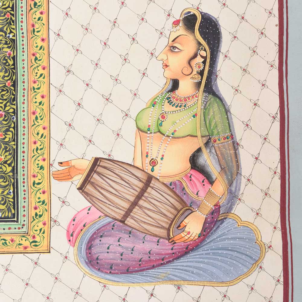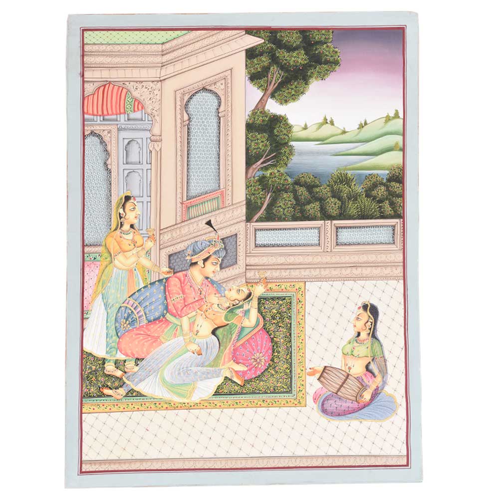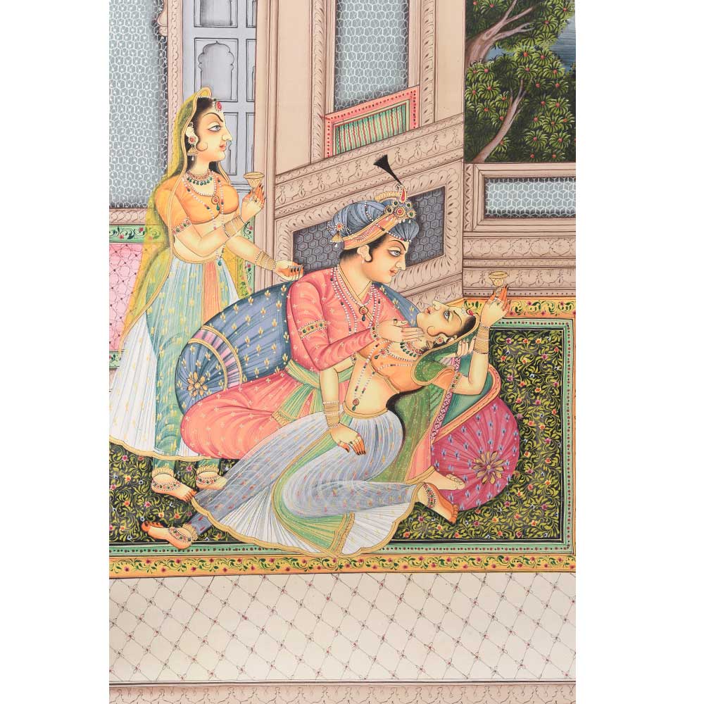 Mughal Paintings are famous worldwide here the Mughal rulers played the central role to bring style and glory to the painting. It captured the Mughal dynasty emperor enjoying a musical interim, wine, and rhythmic dance.