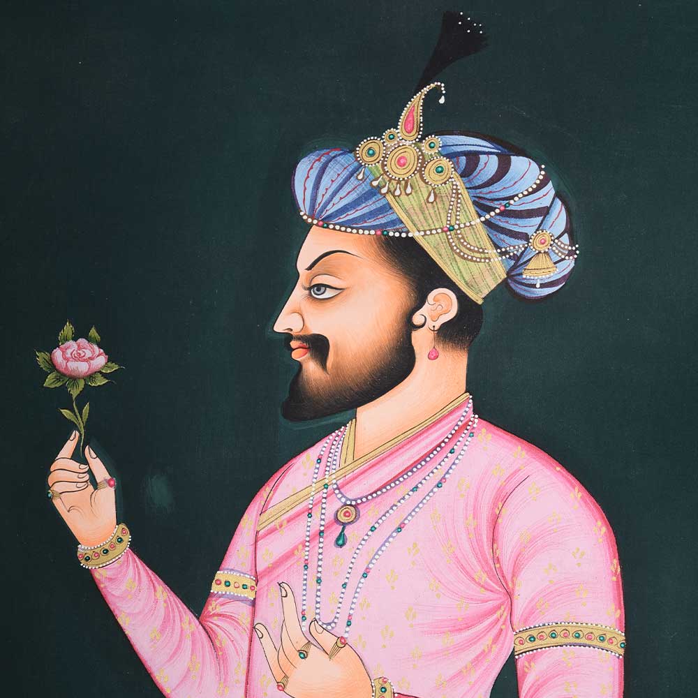 Canvas portrait painting of a Mughal emperor has an elegant design and this painting will make an impressive addition to your room decor or your art collection.