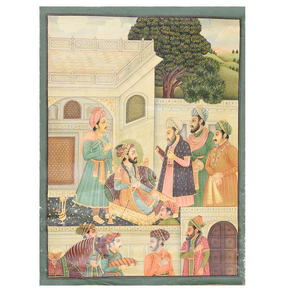 This is an old and unusual painting that is ideal for exhibitions, collections, and gifts. It shows the royal life of the Mughal empire.
