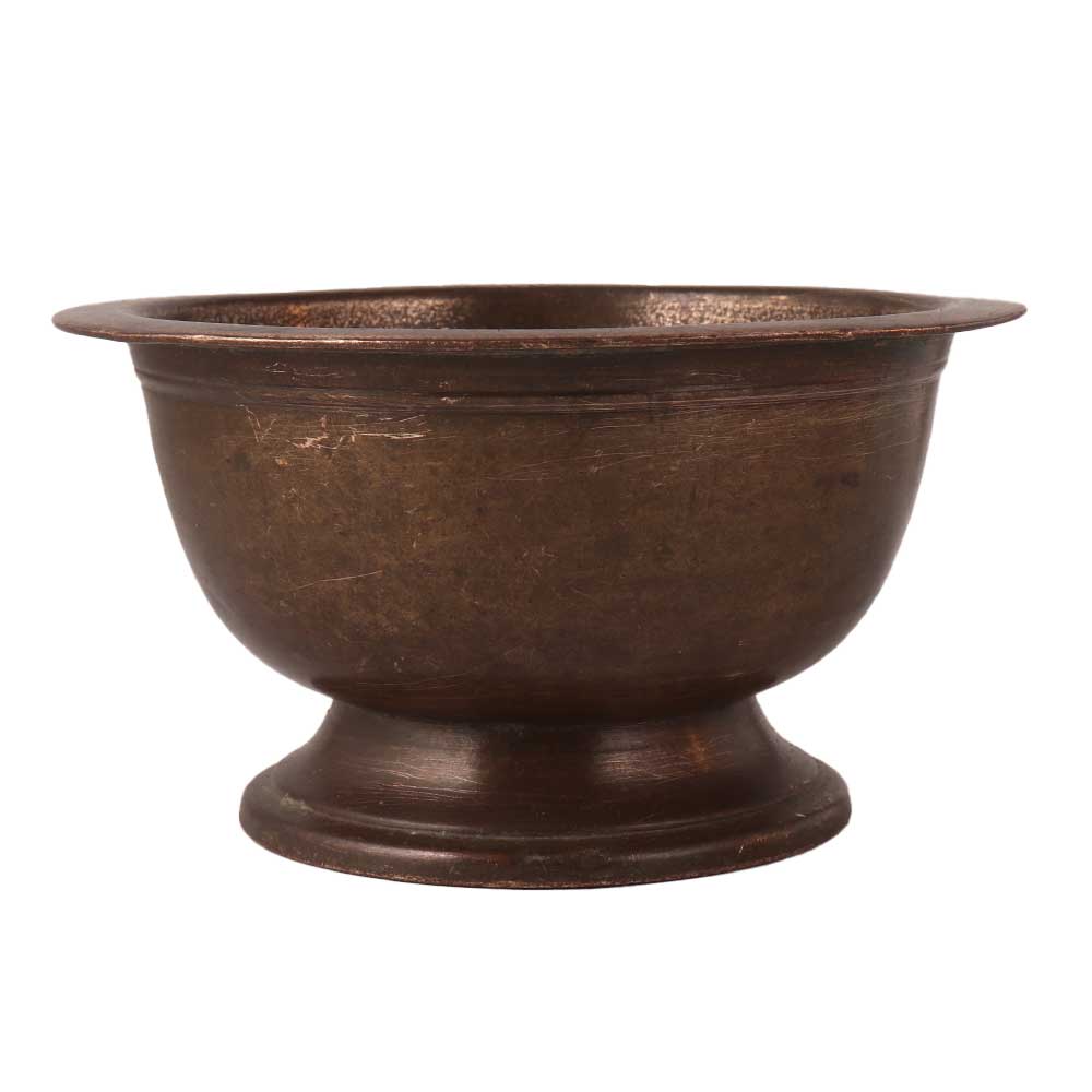 A Censer Incense brass Bowls on a pedestal is a decorative and functional piece commonly used in temples and other religious settings. The censer, typically made of brass, is used to burn incense as a form of offering or to create a pleasant aroma. The large punch bowl sits on a pedestal, which raises it off the ground and gives it a more prominent presence. The censer is often decorated with intricate patterns and designs, making it a perfect addition to any traditional or antique-inspired interior decor. The brass material also adds to the traditional and antique look of the piece. Incense metal bowl is an important part of many religious and spiritual practices, and are used to create a sense of peace, calm, and serenity in the temple. They have a ceremonial significance and are often used during worship, meditation, and other religious rituals.