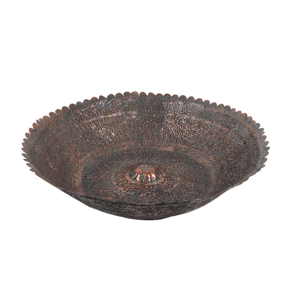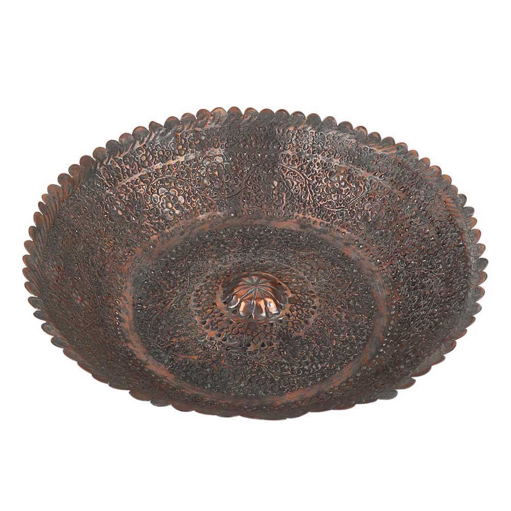 Handmade Copper Bowl Engraved Floral Scalloped Design