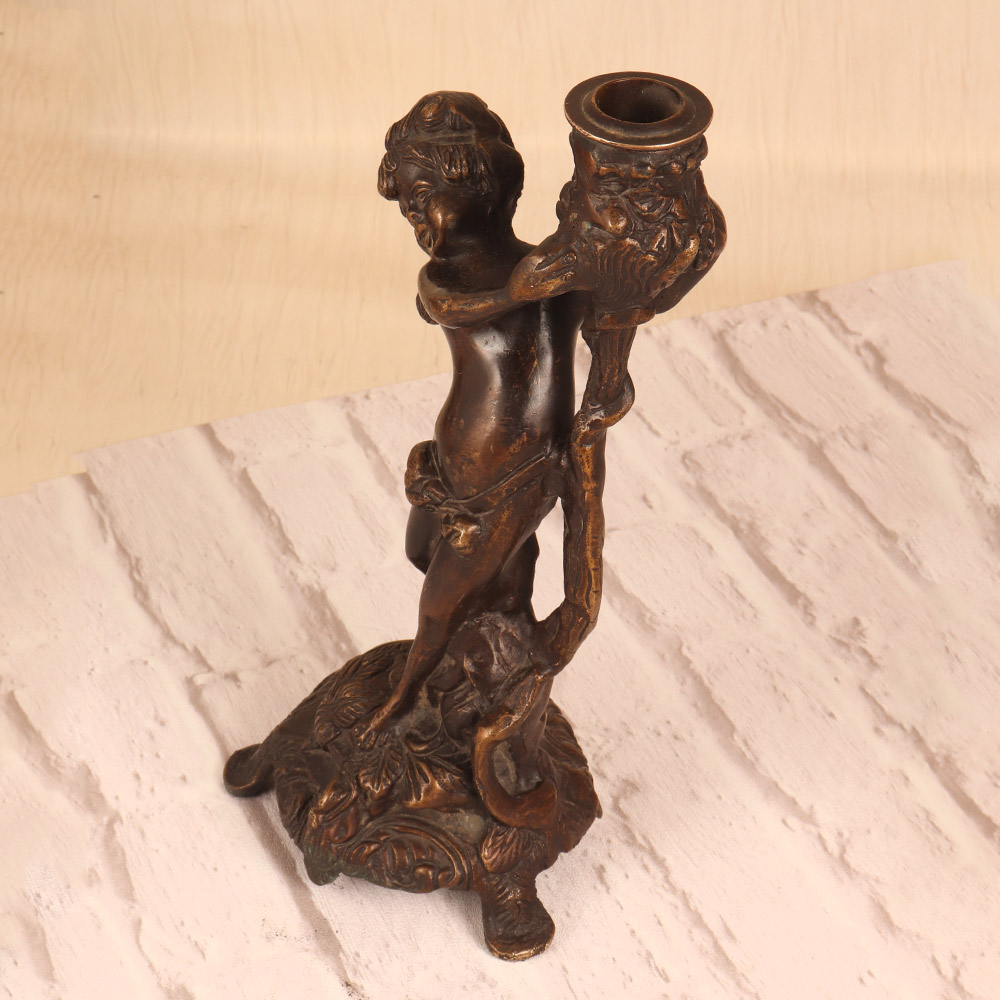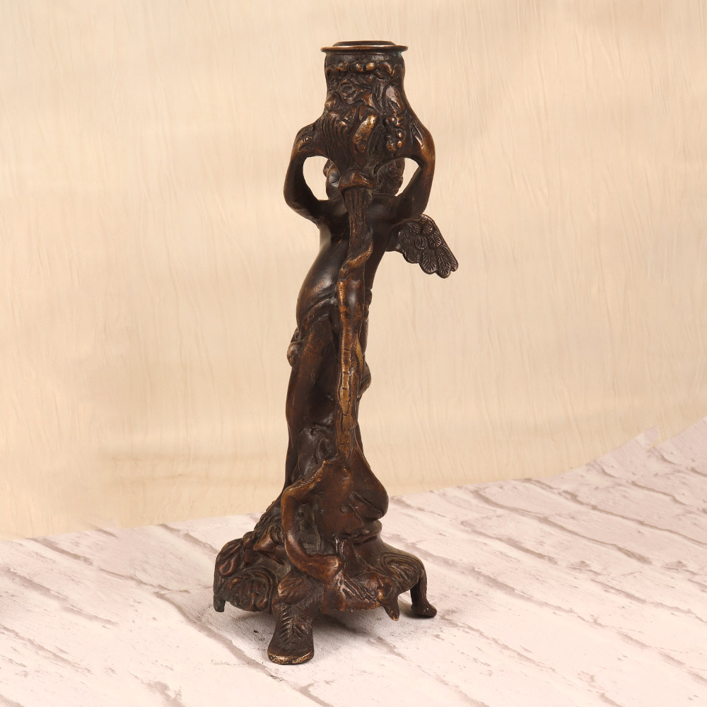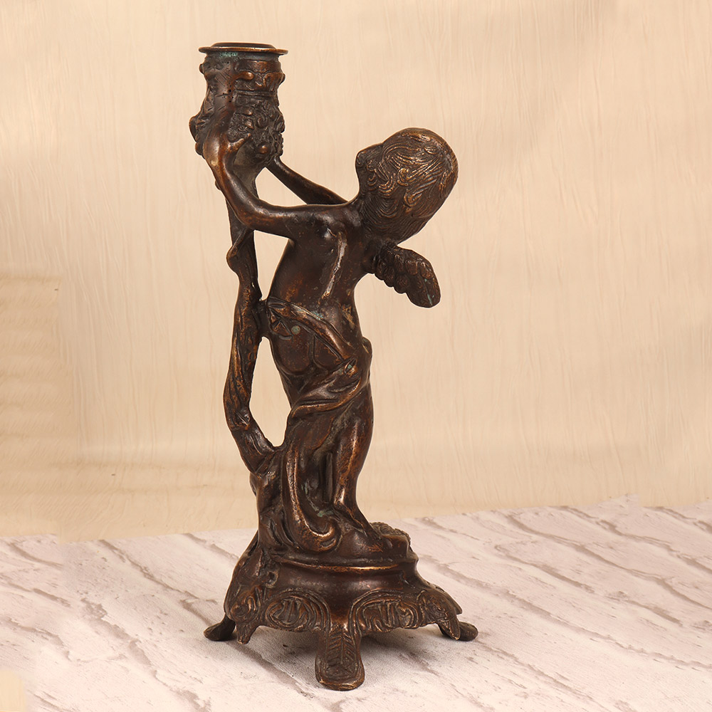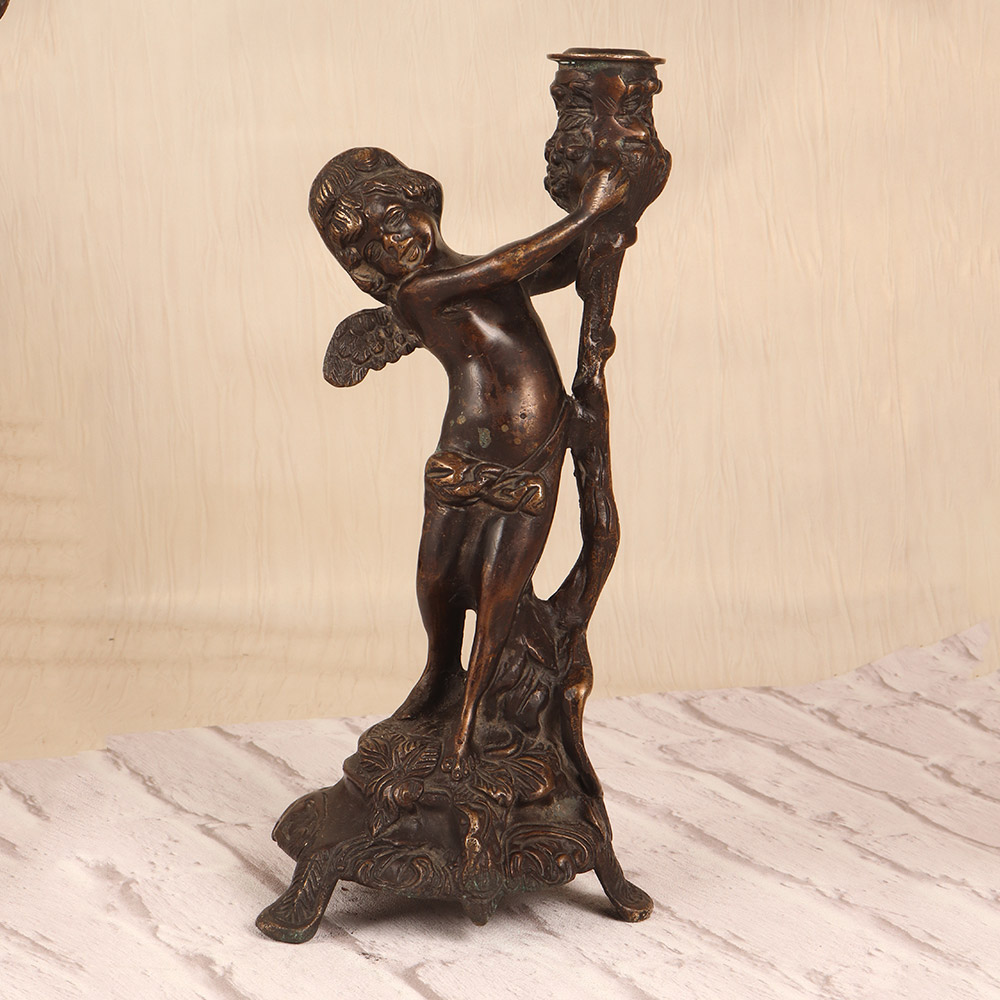 Elevate your home decor with the Vintage Brass Angel Candle Stand, a stunning piece that combines timeless elegance with a touch of the divine. Crafted from rich, dark-finished brass, this striking candle holder features an ethereal angel design that casts a warm, ambient glow. Whether displayed on an entryway console, mantel, or side table, the Vintage Brass Angel Candle Stand will instantly elevate the mood and atmosphere of any space. The angelic figure's serene expression and graceful pose create a sense of tranquility, while the flickering candlelight casts a soft, heavenly glow. This heirloom-quality piece makes a thoughtful gift for those seeking to infuse their home with a touch of sacred beauty and timeless sophistication.