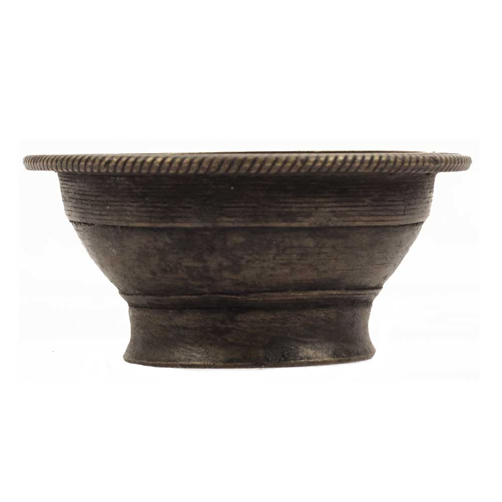 A handmade brass serving bowl with a detailed design on the rim serves as an excellent decoration for homes, offices, restaurants, and bars. It is an ideal gift for Diwali, Christmas, Anniversary, Birthdays, etc. It comes with a black finish.