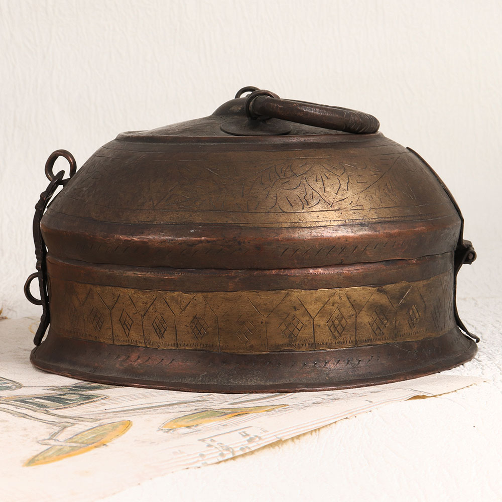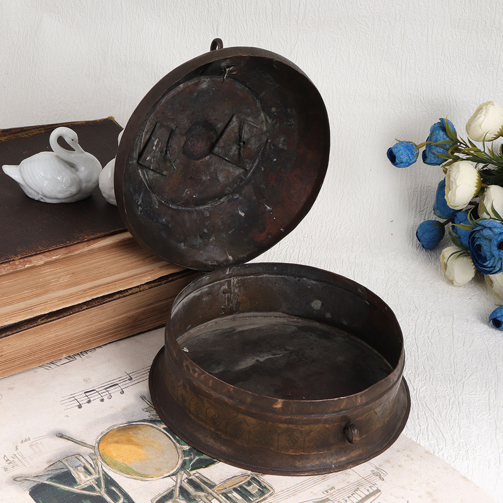 Enhance your interior decor with the timeless charm of our Vintage Brass Jewelry Box. Handmade by highly skilled and experienced Indian artisans, this exquisite piece showcases the rich heritage of craftsmanship passed down through generations. Made from high-quality brass, it exudes durability and elegance. The antique brown finish lends an air of authenticity and the intricate engravings on the surface tell stories of India's cultural richness. A sturdy latch and a convenient handle make it both functional and stylish. This versatile jewelry box is more than just storage, it's a work of art. Whether adorning your home, office, restaurant, hotel, cafe, or shop, it adds a touch of sophistication. Use it to store your precious stones, jewelry, or treasured mementos, adding an aura of opulence to your space. For collectors and exhibitors, it's a must-have piece to showcase at exhibitions. And for special occasions, be it festivals, auspicious events, or moments of love, gifting this brass jewelry box is a gesture of timeless beauty and tradition. Make it a part of your vintage collection, and let it narrate stories of craftsmanship and elegance in your life.