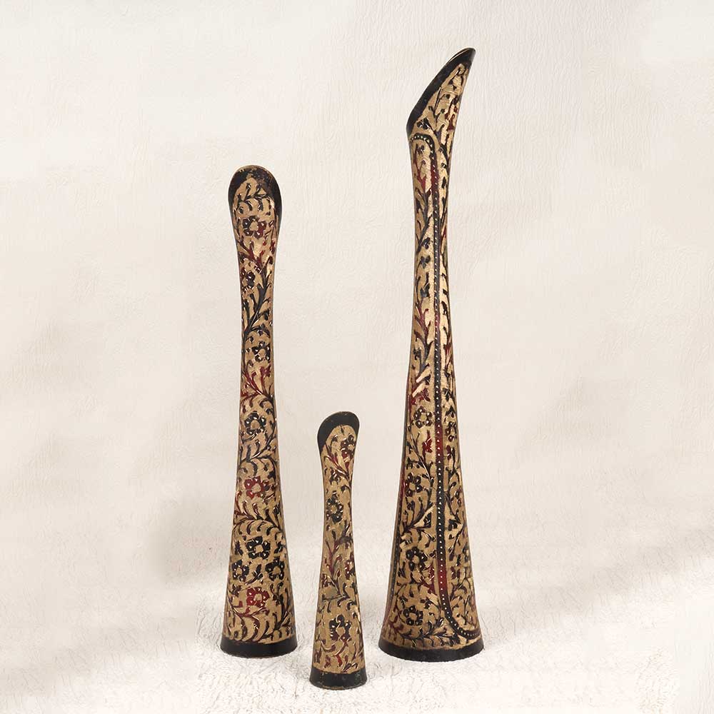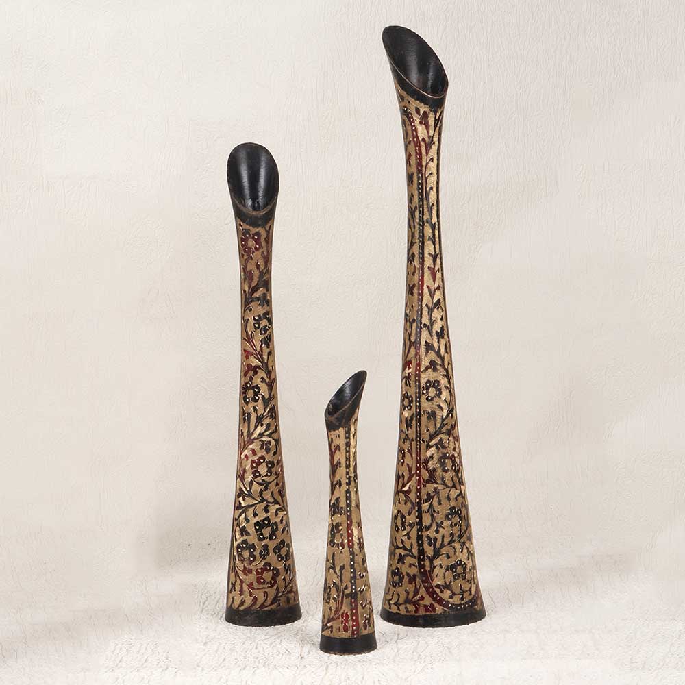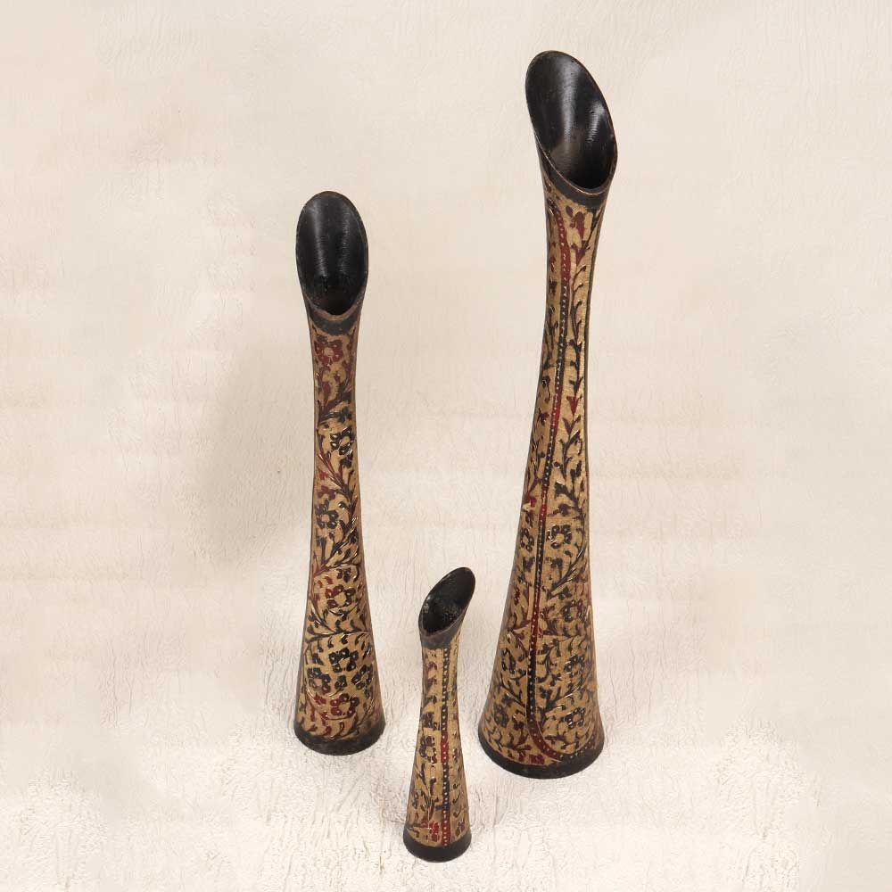 Step back in time with this exquisite set of 3 vintage brass flower pots engraved by hand in Hyderabad, India. Featuring intricate patterns etched into durable, high-quality brass, these pots provide a sophisticated antique elegance perfect for any blossoms. With their gleaming brass shine and ornate hand-engraved details, these pots are sure to catch the eye as gorgeous decorative accents. Use the largest as a stately floor vase for tall blooms or as an entryway statement piece. The smaller pots effortlessly display petite posies on shelves and side tables with vintage charm. The breathable brass material allows ample airflow and drainage for healthy plants. For avid gardeners and urban dwellers alike, this set elevates any greenery into a stylish decorative element. Make your home feel curated, worldly and lived-in with these hand-engraved brass beauties crafted in Hyderabad, India.