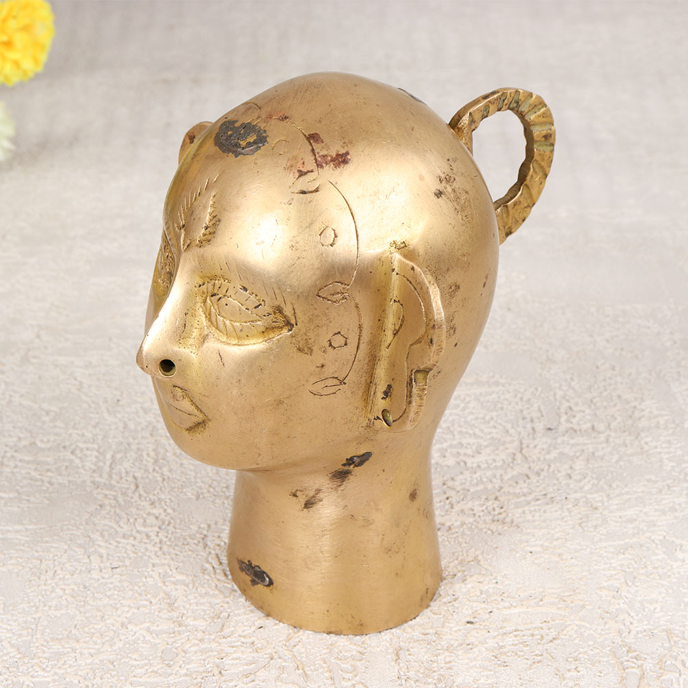 Enhance your spiritual space with the timeless elegance of this vintage White Brass Gauri Head, embodying the divine essence of Goddess Parvati. Handcrafted with precision by professional Indian artisans from Gujarat, this exquisite piece boasts a lustrous golden finish, adding a touch of opulence to any environment. Meticulously crafted from high-quality white Brass, it seamlessly merges artistic craftsmanship with spiritual significance. This Gauri Head is a versatile addition to your sacred sanctuaries, be it at home, office, restaurant, hotel, or cafe prayer room. Its captivating presence extends beyond religious spaces, making it a sophisticated decor piece for various settings. A testament to timeless beauty, this artefact beckons to be part of your vintage collection, enriching your surroundings with its cultural and aesthetic charm. Perfect for special, festive, or auspicious occasions, this handmade masterpiece also serves as an impeccable gift, allowing you to share the divine blessings and artistic richness with your family, friends or relatives. Embrace the grace and tradition embodied in this vintage White Brass Gauri Head for a truly enchanting experience.