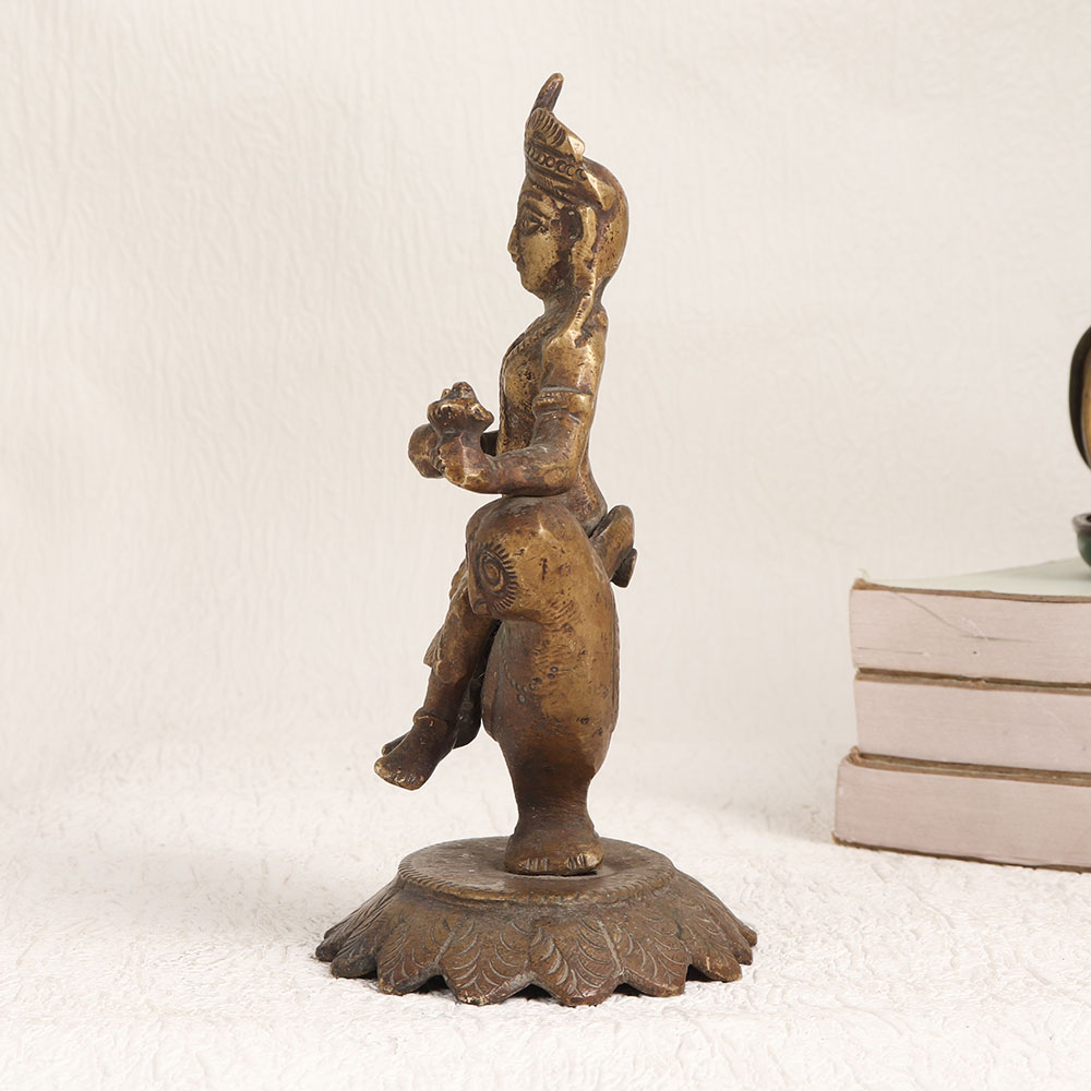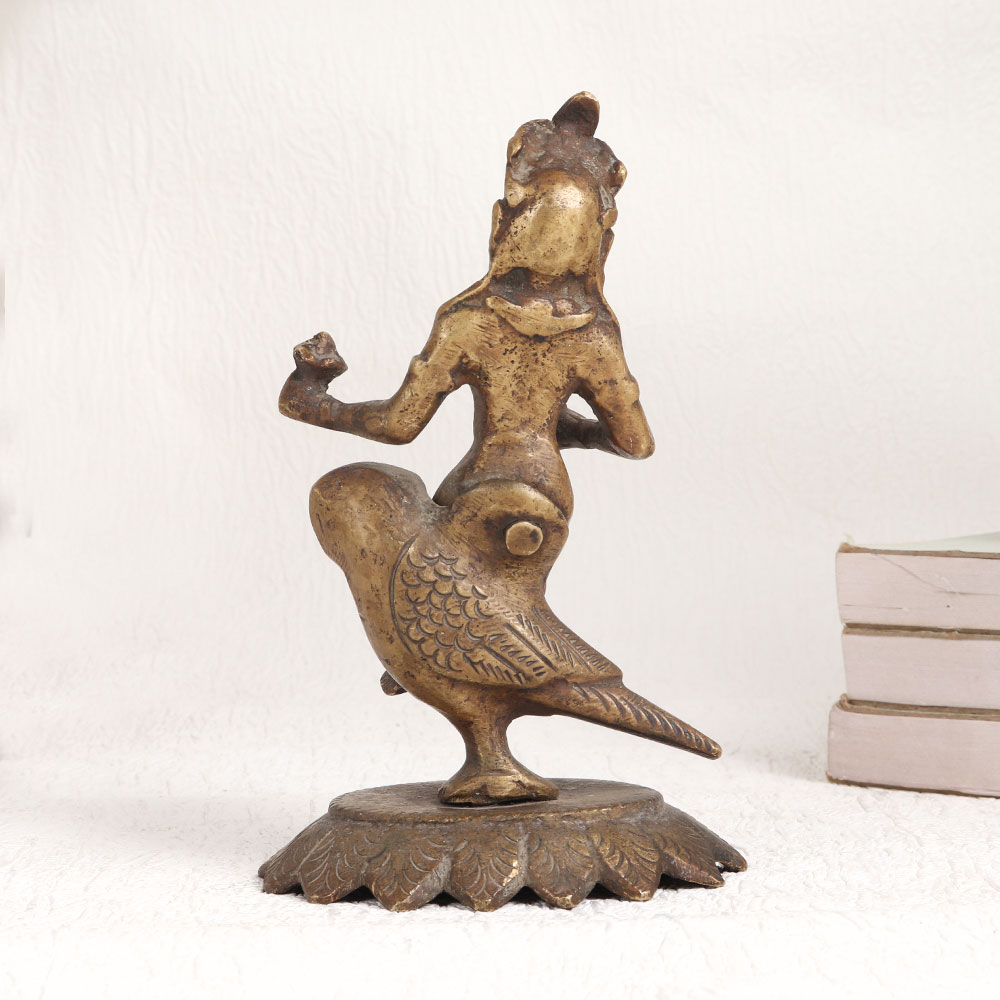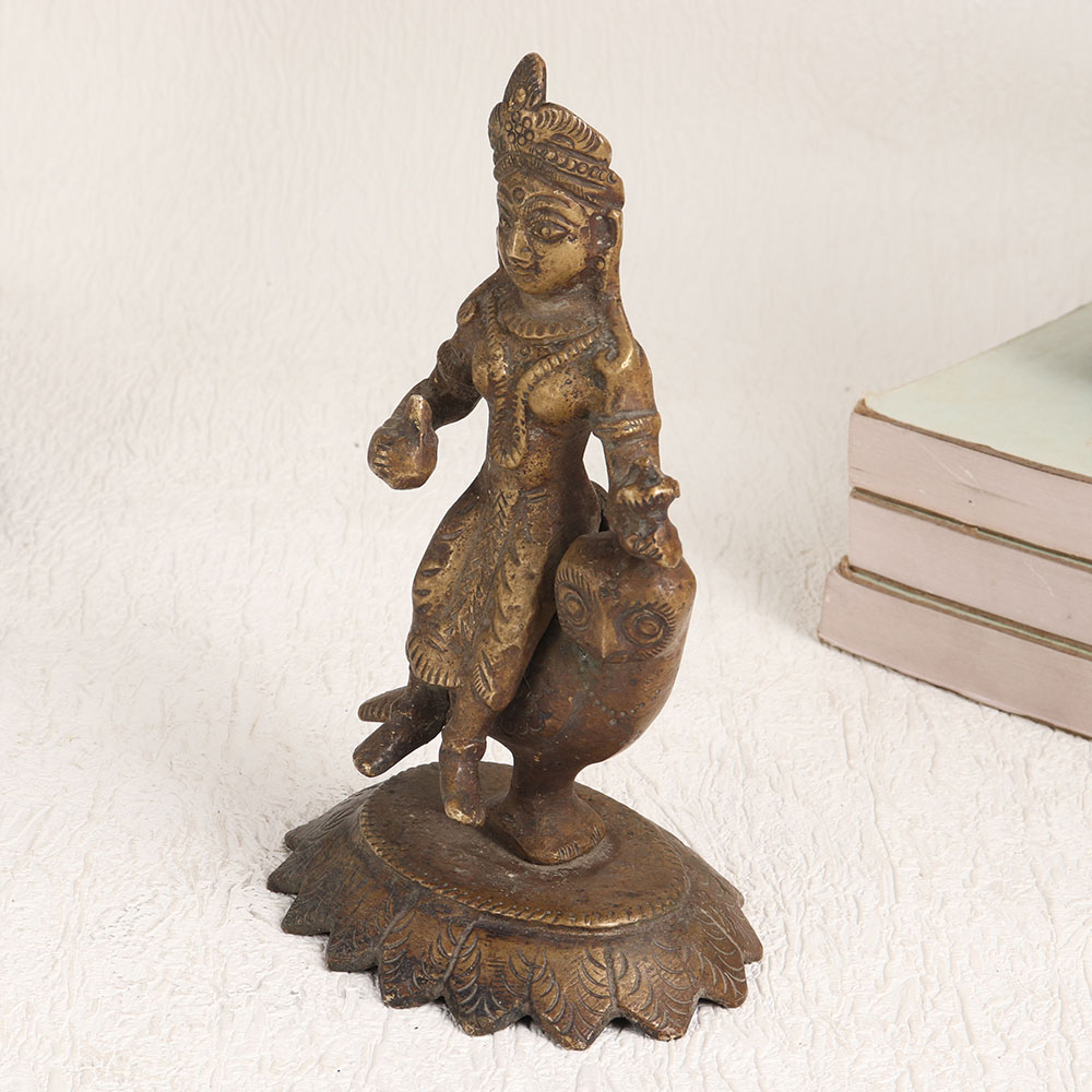Enhance your space with the timeless beauty and divine presence of this exquisite brass statue featuring Goddess Lakshmi seated gracefully upon her loyal companion, the owl. Crafted with meticulous attention to detail by skilled Indian artisans, this statue boasts an antique brown finish that exudes a sense of antiquity and charm. Handmade from high-quality brass, this elegant masterpiece is versatile in its applications. Whether adorning your home, office, restaurant, hotel, cafe, or shop, it serves as both a symbol of devotion and an object of aesthetic fascination. Use it for worship or simply as an opulent decoration piece to infuse your surroundings with an aura of spiritual serenity. Adding this piece to your vintage collection will be a testament to your appreciation for art and culture. It's equally suitable for exhibition displays, where its intricate craftsmanship and cultural significance can be admired by all. Additionally, this stunning statue makes for an unforgettable gift, perfect for your family, friends or relatives on special, festive, or auspicious occasions, imparting blessings, prosperity, and a touch of Indian heritage. Invite the divine presence of Lakshmi into your life with this remarkable brass creation.
