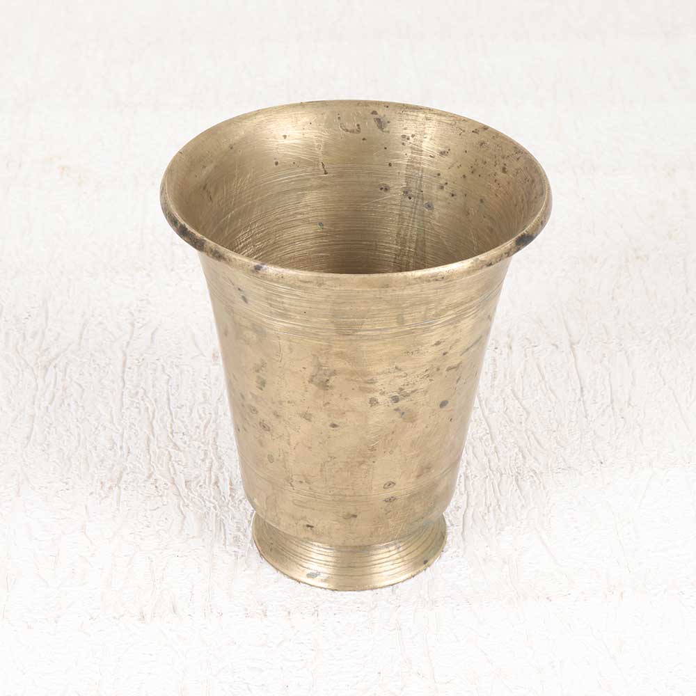 Steeped in myth and meaning, this handcrafted vintage holy cup beautifully represents South Indian art. Cast in earthy brass with a plain brown finish, the cup features delicate etched accents depicting regional folklore. South Indian brasswork is renowned for its intricate designs that share spiritual stories. This cup's etched patterns likely illustrate legends of gods, goddesses, and saints meaningful to the local culture. Owning this cup connects you to these tales and the people who treasure them. Use it in your daily rituals or proudly display it as an altarpiece or collectible. As you drink from it, reflect on the rich history it carries and the belief in its sacred power. Let this special artisan cup bring a touch of India's tradition and craftsmanship into your home.