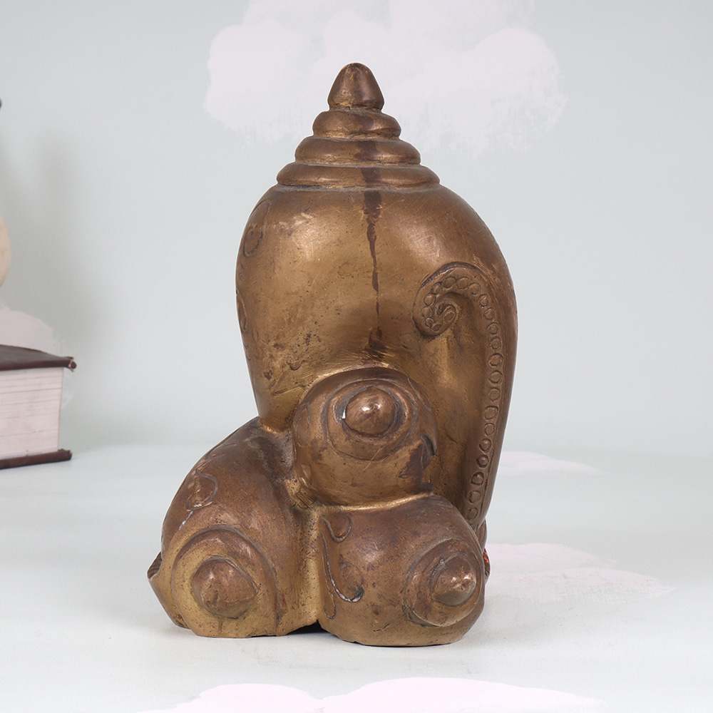 Summon the blessings of Lord Ganesha, the elephant-headed deity of wisdom and prosperity, with this exquisite vintage brass statue. Crafted with meticulous attention to detail, this premium piece will captivate and inspire you. As the remover of obstacles and bringer of good fortune, Lord Ganesha is revered for his ability to help devotees overcome challenges and achieve their goals. Displaying this brass figure in your home or office creates an atmosphere of calm, clarity, and abundance, inviting his blessings into your life. The timeless, heritage-inspired design lends an air of ancient spirituality, serving as a beautiful and meaningful focal point. Whether you're seeking to deepen your Hindu faith or simply appreciate fine craftsmanship, this vintage Ganesha statue is a stunning piece that will elevate your space. Place it on a shelf, table, or altar and let its powerful symbolism guide you on your journey. With its impressive stature and luxurious construction, this brass figure also makes an exceptional gift that will be treasured for years to come.