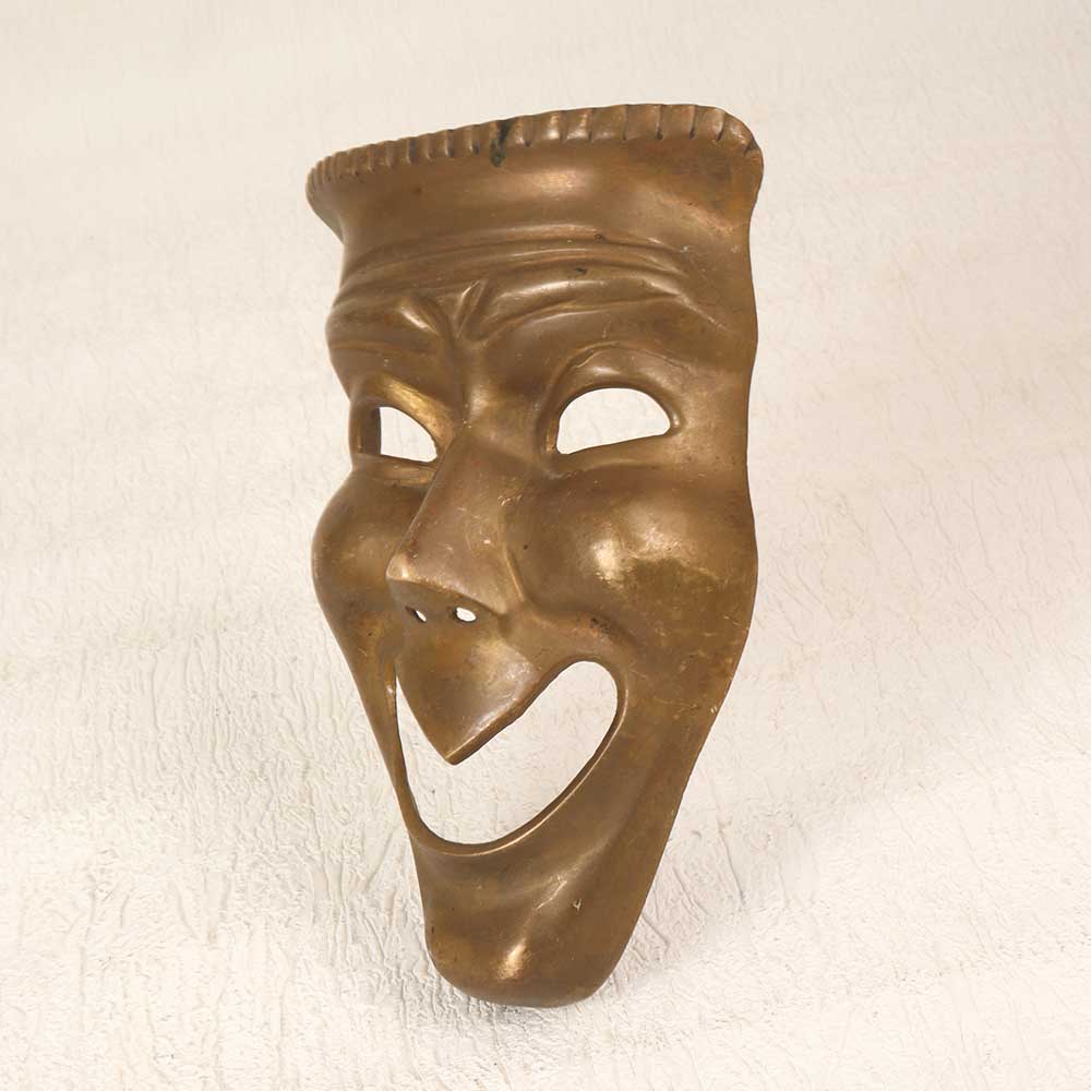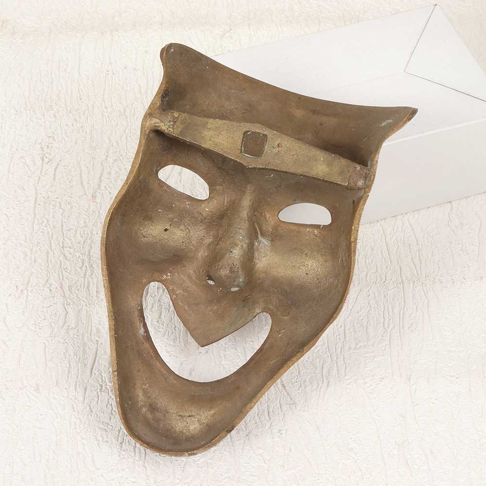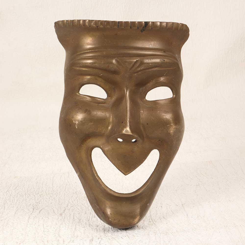 Add intrigue and old-world allure to your home with this antique brass male mask handcrafted in the exotic lands of Assam. Featuring exquisite facial details and tribal patterns etched into weathered brass, this mask brings the mystique of ancient indigenous rituals right into your living space. Display this vintage brass mask in your entryway or living room to greet guests with its stoic, mesmerizing stare. The aged patina brass and intricately etched patterns are sure to spark curiosities and conversations. Or, place it in your bedroom or office to infuse these spaces with exotic, mystical energy. For collectors and admirers of artifacts from faraway lands, this solid brass mask is a decor accent that evokes the rituals and cultures of Assam's fascinating past. Let its dramatic form and intricate craftsmanship add a global, cultured vibe to your home.