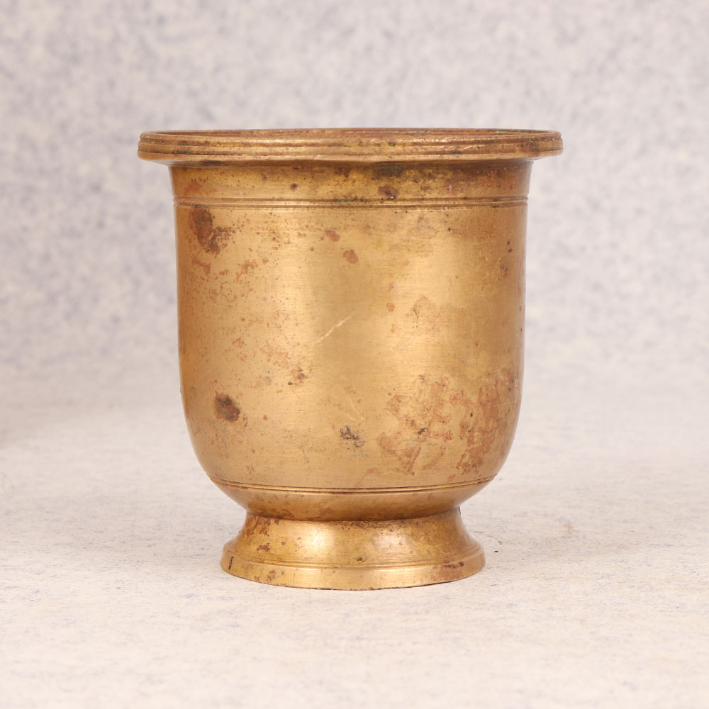 Enhance your spiritual ambiance with our exquisite Vintage Brass Panchpatra Pot that is a masterpiece meticulously handcrafted by highly talented Indian artisans. This sacred vessel, designed for holding holy water during prayers, exudes timeless charm with its antique brown finish, showcasing the rich cultural heritage of India. Forged from high-quality brass, the pot is a testament to artisanal mastery, blending tradition with elegance. Its vintage appeal and authentic craftsmanship make it a unique addition to any prayer room, be it at home, in an office, restaurant, hotel, or cafe. This versatile piece seamlessly complements diverse settings, enhancing the sacred atmosphere wherever it finds a place. As a collector's item, the Vintage Brass Panchpatra Pot promises to be a cherished addition to your vintage collection, carrying with it the stories of devotion and craftsmanship from generations past. Moreover, it serves as a thoughtful and meaningful gift for your family, friends or relatives on special, festive, or auspicious occasions, symbolizing blessings, tradition, and the enduring beauty of cultural heritage. Embrace the divine aura and aesthetic allure with this timeless piece that transcends time and resonates with spirituality.