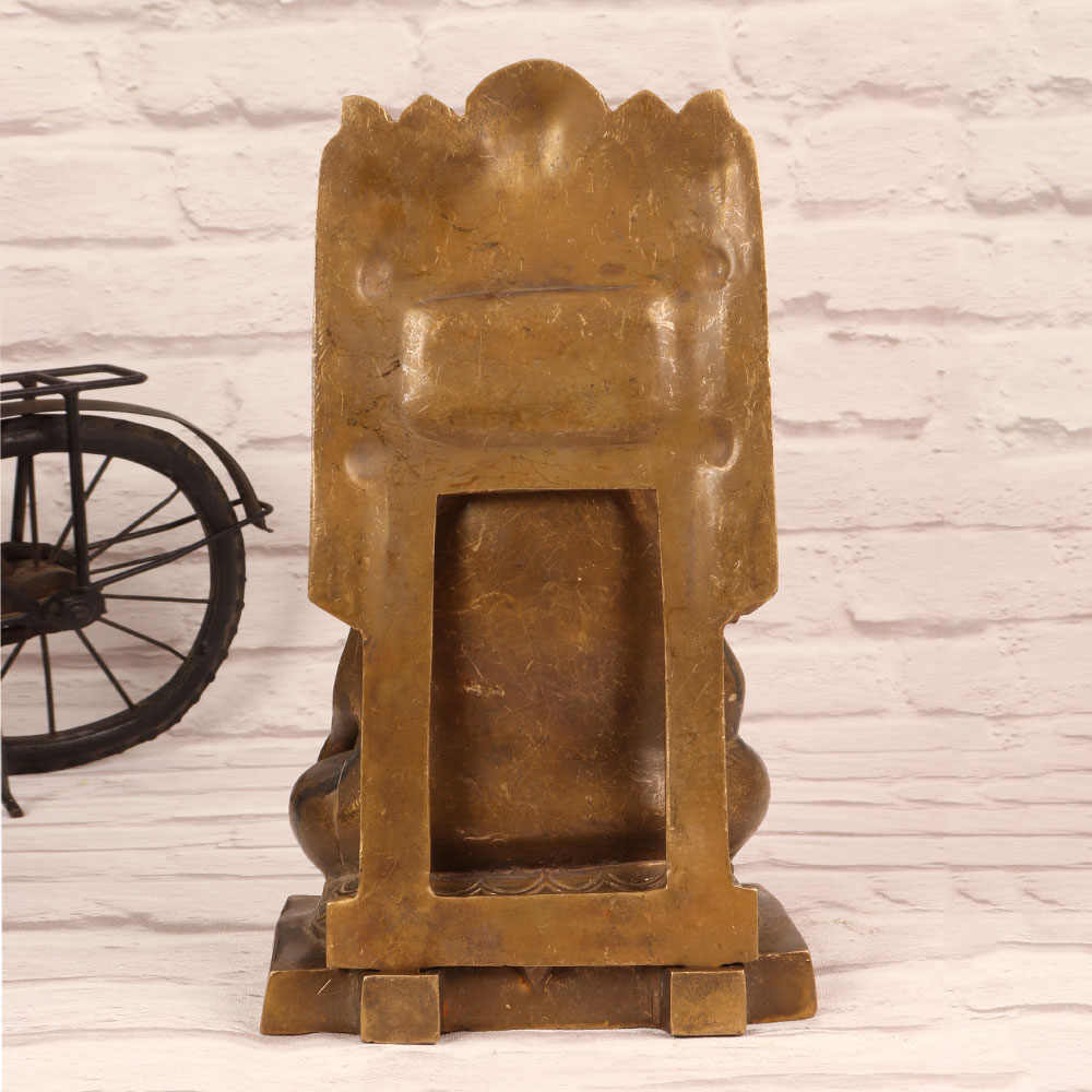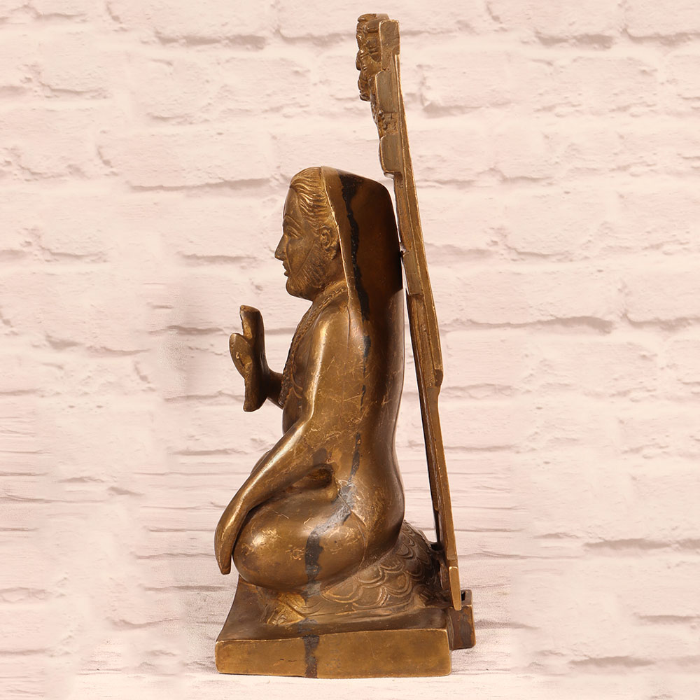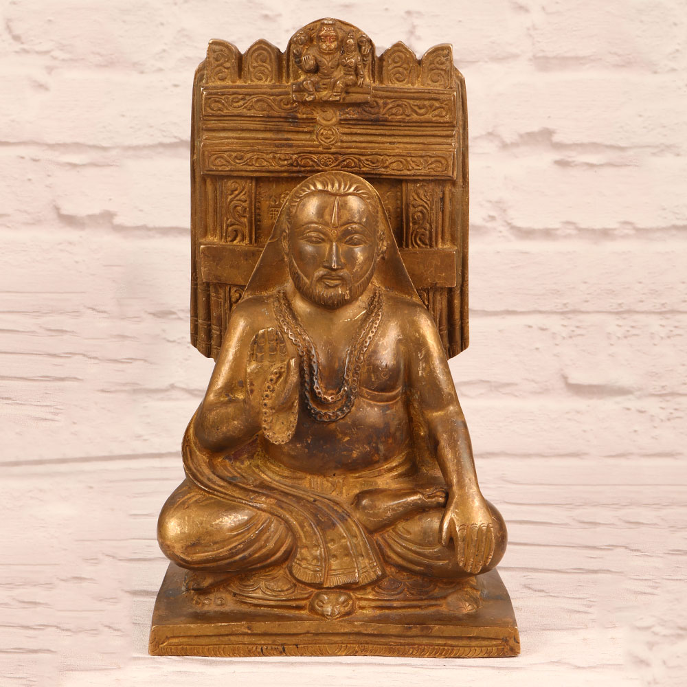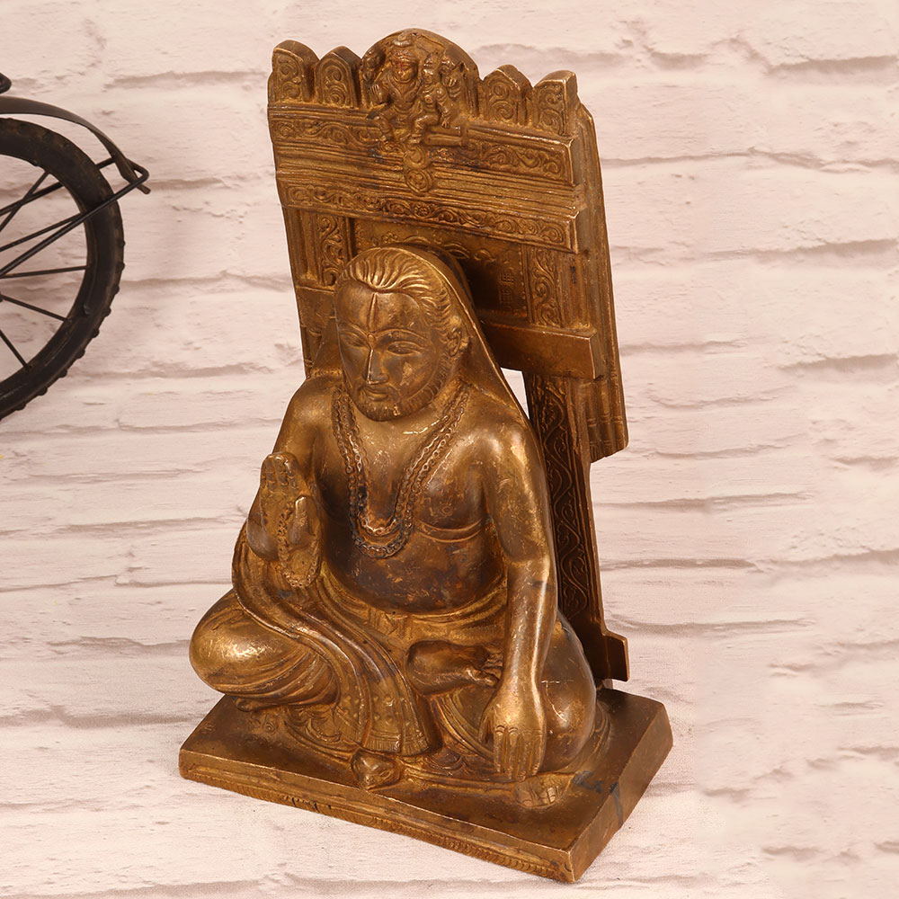 Buy a Brass Raghavendra Swamy Statue with Prabhavali online that is a captivating masterpiece meticulously handcrafted by talented Indian artisans. Fashioned from high-quality brass, this stunning statue boasts an antique brown finish, lending it an air of timeless elegance. The intricate detailing on the Prabhavali adds to its aesthetic appeal, making it a perfect addition to any home, office, restaurant, hotel, or cafe. Raghavendra Swamy, a revered saint in the Hindu tradition, is depicted in a serene and benevolent posture, radiating an aura of spiritual grace. Known for his selfless devotion and miracles, Raghavendra Swamy is believed to bless devotees with prosperity, health, and happiness. This artisan-crafted statue serves as more than just a decorative piece; it is a symbol of faith and positive energy. Whether adorning your personal space or serving as a thoughtful gift for your family, friends or relatives on special, festive, or auspicious occasions, this Brass Raghavendra Swamy Statue is a testament to the rich heritage and craftsmanship of India. Embrace the divine energy and cultural significance that this exquisite piece brings into your life.