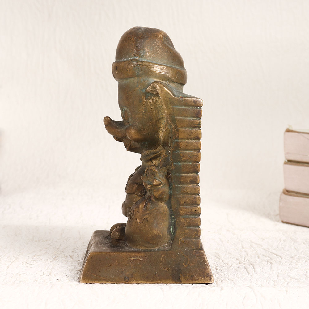 Buy a Brass Rat Statue with a unique twist that is a charming and festive addition to your decor. This exquisite brass statue captures the essence of the holiday season in a delightful and artistic manner. Standing tall, this rat is dressed in a stylish jacket and cap, adding a touch of whimsy and elegance to your surroundings. Crafted with precision and care by highly skilled and experienced artisans in the English Art tradition, this statue boasts a rich antique brown finish that exudes timeless sophistication. In its left hand, the rat carries a small bag, adding a touch of intrigue to its character. What makes this piece truly special is the engraved "Merry Christmas" text on its platform, making it an ideal seasonal decor item. Versatile and adaptable, it can enhance the ambiance of your home, office, restaurant, hotel, cafe, or shop. Whether you're a collector seeking unique vintage pieces or planning to showcase it at an exhibition, this brass rat statue will surely captivate your audience. Moreover, it makes for a heartfelt and memorable gift on special, festive, or auspicious occasions, ensuring that your family, friends or relatives experience the joy and artistry of this exceptional creation. Elevate your decor and celebrate the holidays with this handcrafted masterpiece, a symbol of craftsmanship and merriment.