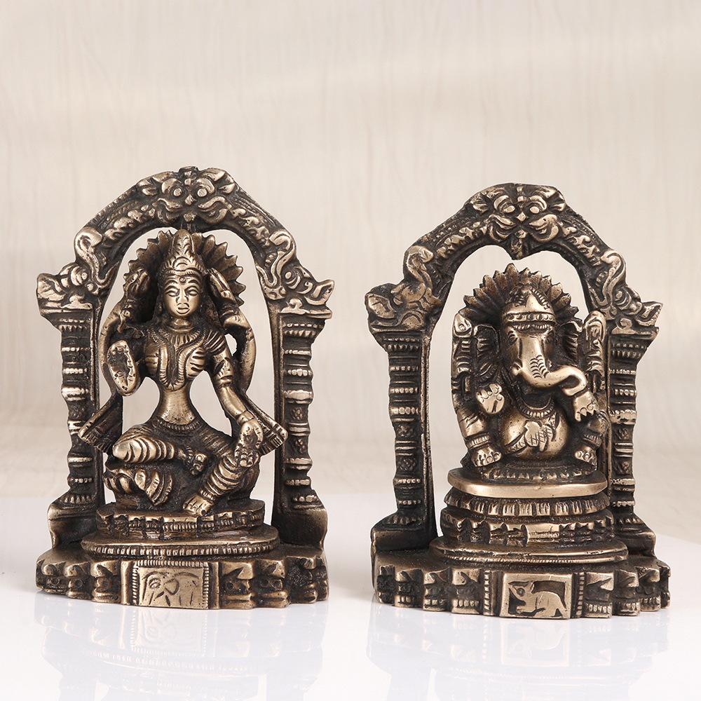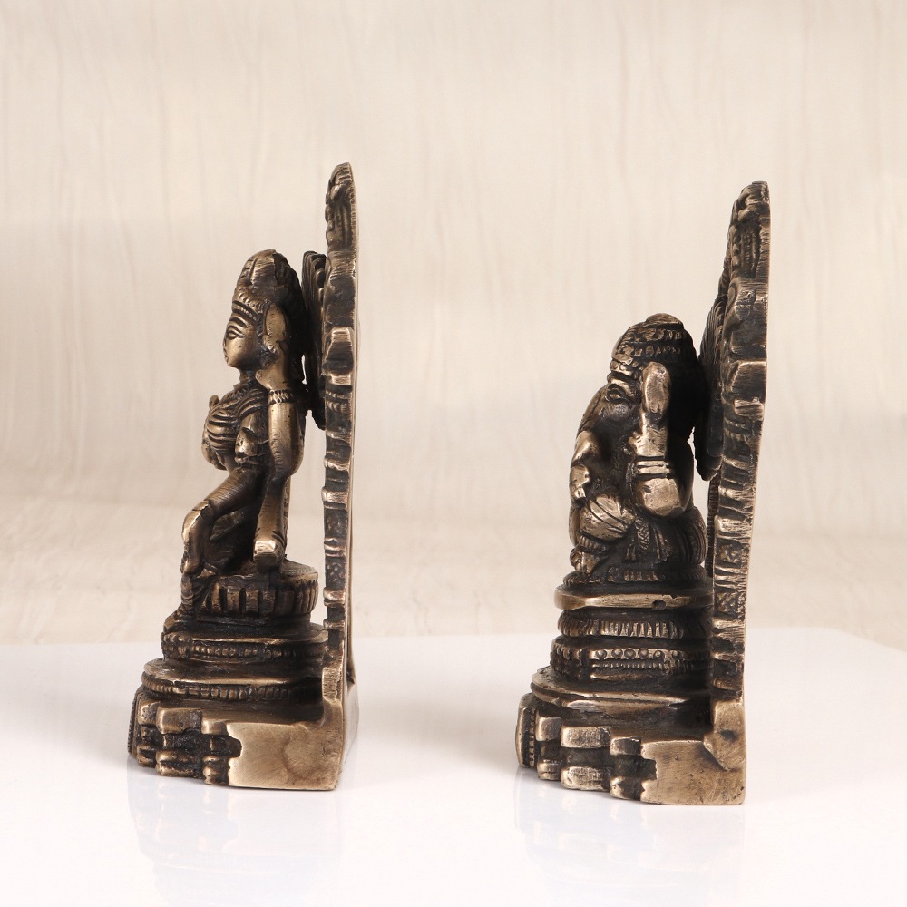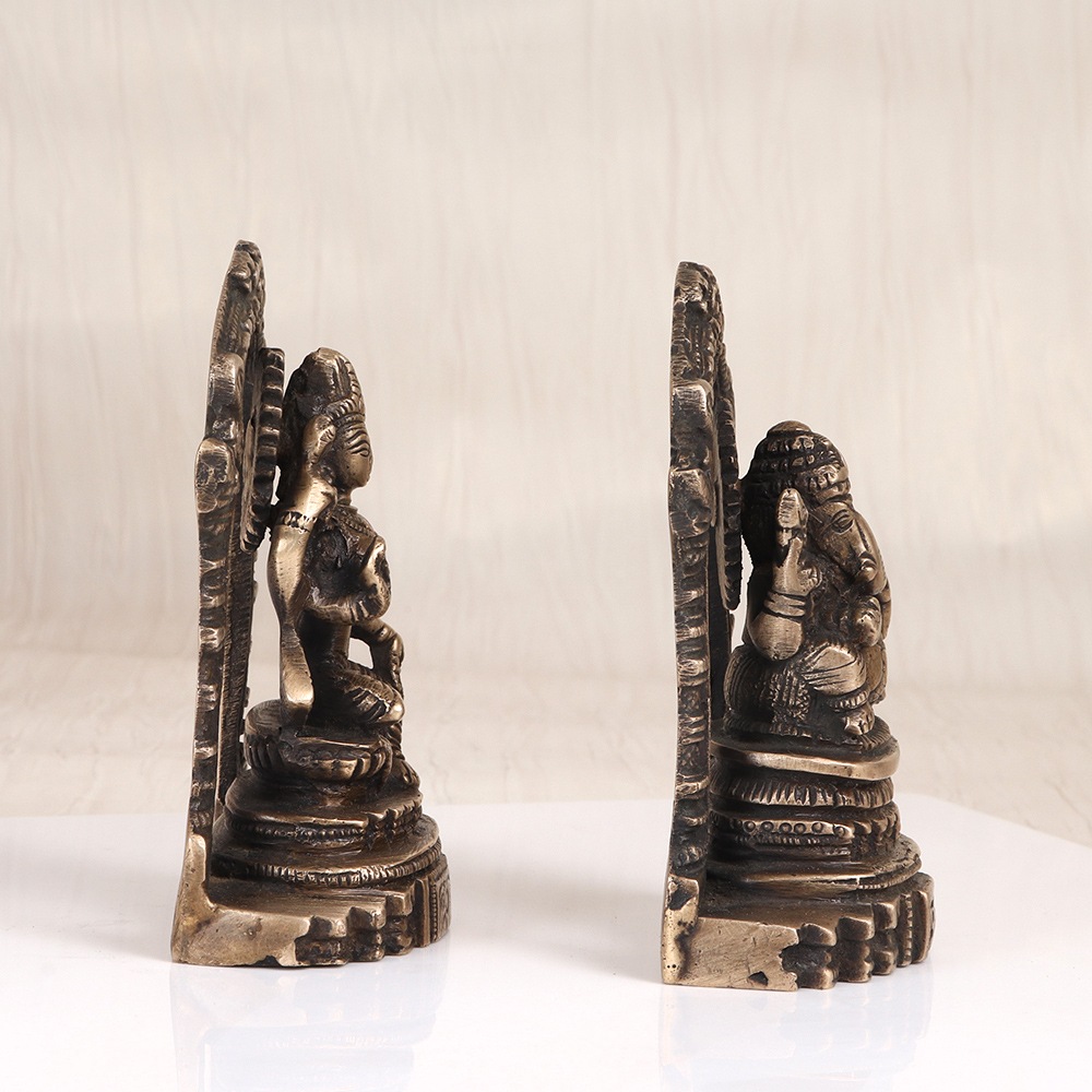 Elevate your sacred space with the captivating presence of this vintage brass Goddess Lakshmi and Lord Ganesha statue. Crafted with meticulous attention to detail, this stunning piece radiates the deities' divine energy, inviting you to connect with the blessings of prosperity, wisdom, and protection. As you gaze upon this magnificent statue, you'll feel a profound sense of calm wash over you, allowing you to center your mind and deepen your spiritual practice. Display this breathtaking piece in your meditation corner, living room, or office to create an atmosphere of divine harmony and inspiration. Whether you're a devoted Hindu or simply appreciate exquisite art, this vintage brass Lakshmi and Ganesha statue is a must-have addition to your home. Invite the blessings of the deities into your life and elevate your décor with the timeless elegance and spiritual significance of this stunning work of art.