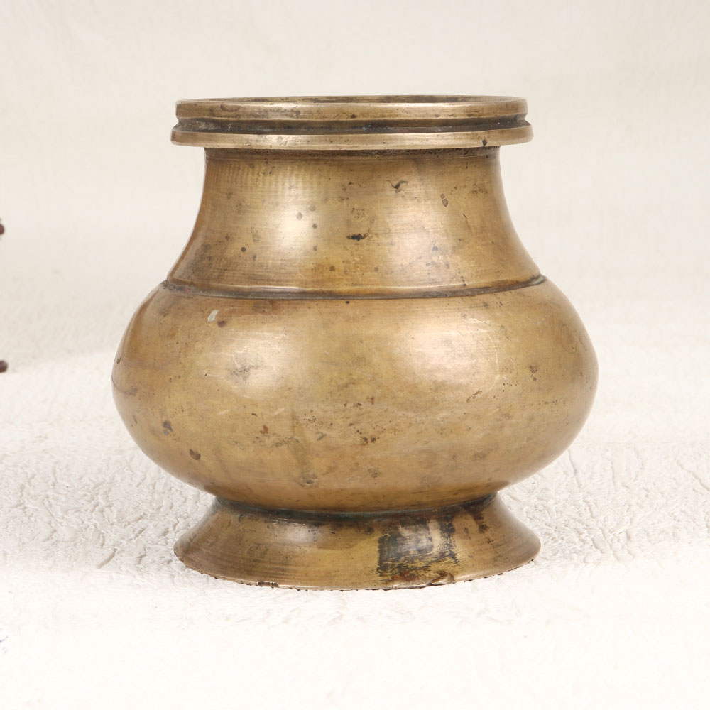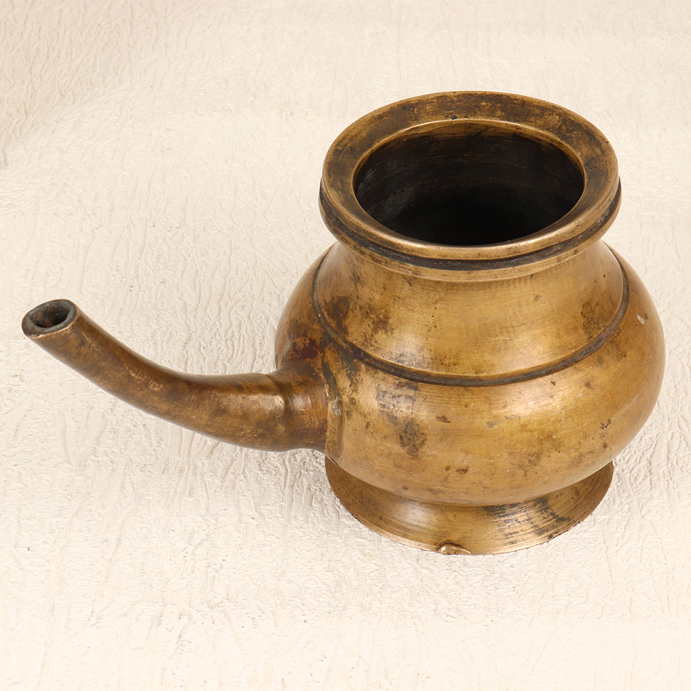 Bask in the gentle glow of holiness with this vintage brass holy water pot. With timeless charm and sacred purpose, it brings spiritual comfort to your home. Steep yourself in tranquil devotion with this timeworn vessel designed to hold holy water. Featuring a convenient spout for blessing your space, it creates a sacred oasis for spiritual grounding. The alluring vintage patina reflects generations of cherished use in religious rituals and ceremonies. Honor your faith and traditions with this meaningful brass pot. Perfect for home altars, prayer corners, and other sacred spaces, it allows you to share in the divine grace of holy water and deepen your spiritual connection.