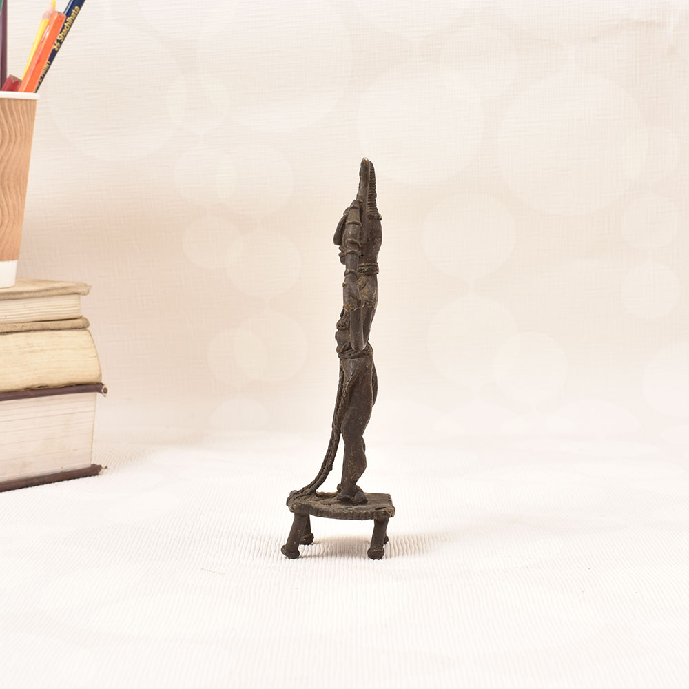 Bring the divine energy of Lord Shiva into your home with this captivating folk brass statue. Crafted by skilled artisans, this stunning piece is a work of art that will elevate your sacred space. This folk brass Lord Shiva statue is more than just a decoration - it's a vessel for the powerful energy of the Hindu deity associated with transformation, destruction, and rebirth. Gaze into Lord Shiva's serene face and feel the weight of his calming presence in your space. As the centerpiece of your meditation corner or altar, this statue will inspire you to connect with the divine and unlock your own capacity for change. Whether you're a seasoned spiritual practitioner or simply appreciate fine Tribal Art, this Lord Shiva statue is a stunning addition to any home. Place it in a prominent spot and let its timeless beauty and sacred energy elevate your environment. Invite the blessings of Lord Shiva into your life and experience the profound sense of peace and clarity that his presence can bring.