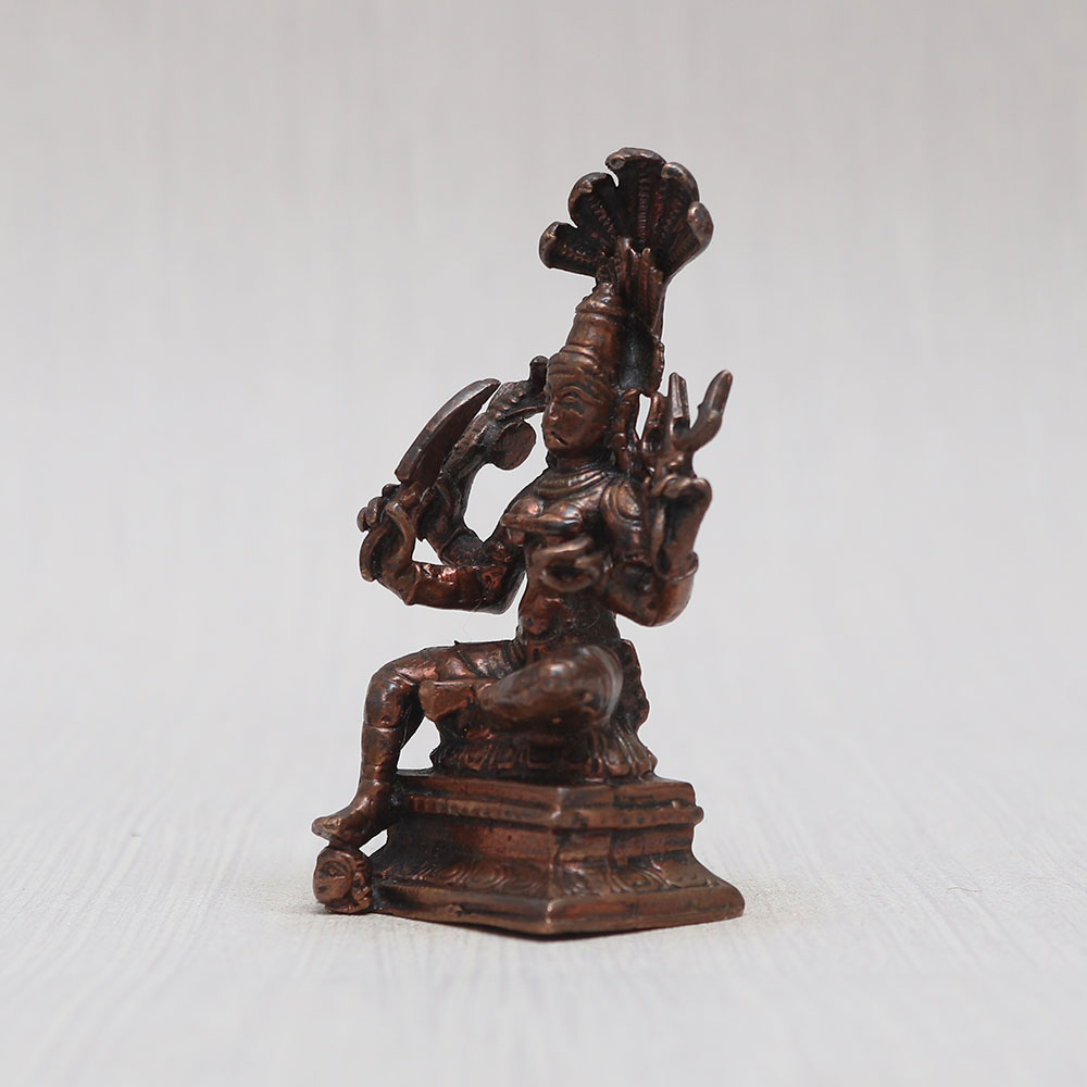 Experience the divine presence with our Copper Goddess Mariamman statue, meticulously crafted by skilled Indian artisans using high-quality copper. The statue boasts a vintage-style finish, adding a touch of timeless charm to any space. With its eye-catching detailing and captivating aura, it's an ideal addition to your prayer room at home, office, restaurant, cafe, or shop. This statue is perfect for exhibitions, decorations, and collections, effortlessly attracting attention with its divine allure. Embrace spirituality as you worship in your temple, where the statue radiates blessings. Not just for personal use, this stunning goddess statue makes a thoughtful and meaningful gift for your loved ones on special, festive, or auspicious occasions. Elevate your surroundings with this enchanting and soul-soothing piece of art, a true symbol of devotion and divinity.