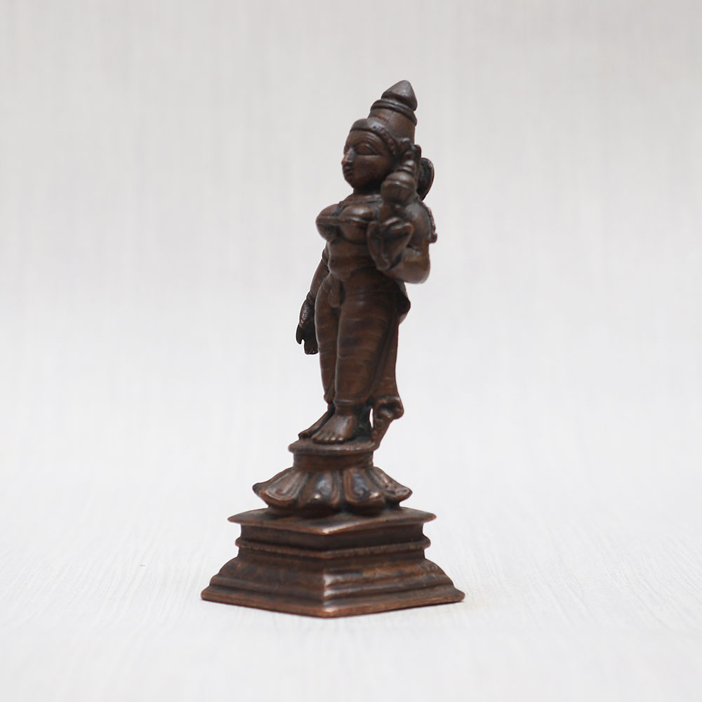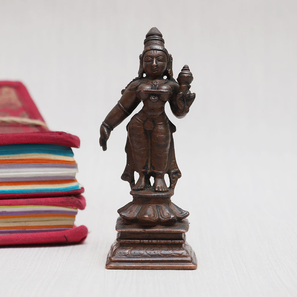 Buy a Hindu Goddess Parvati Bronze Statue online that is handcrafted by talented Indian artisans using premium brass. This stunning standing statue showcases a vintage-style finish, adding a touch of timeless elegance to any space. Ideal for your prayer room at home, office, restaurant, or cafe, this captivating masterpiece is adorned with intricate detailing that effortlessly catches the eye. Its impeccable craftsmanship makes it a remarkable item for exhibitions, decorations, and collections alike. With its spiritual significance, this statue can also be reverently placed in a temple for worship. Furthermore, it serves as a meaningful and cherished gift for your loved ones on special, festive, or auspicious occasions. Explore the divine beauty of god idols online and embrace the spiritual aura of this enchanting Goddess Parvati idol, handpicked for its divine allure.