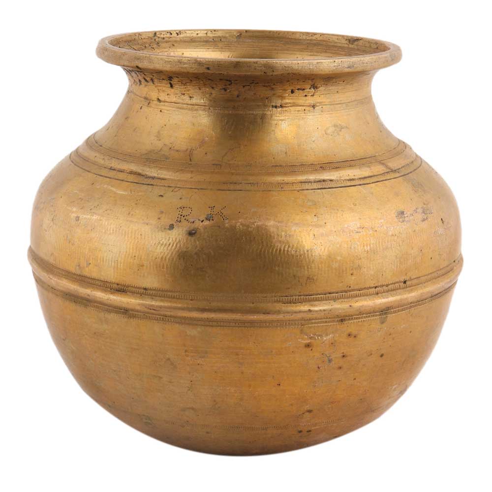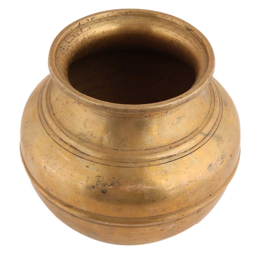 This handmade gold brushed brass kalash or lota is very suitable for placing in a temple for pooja, home decoration and weddings.