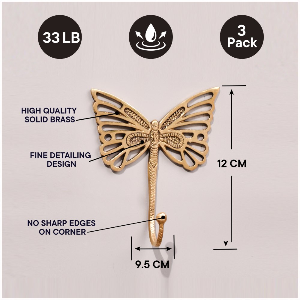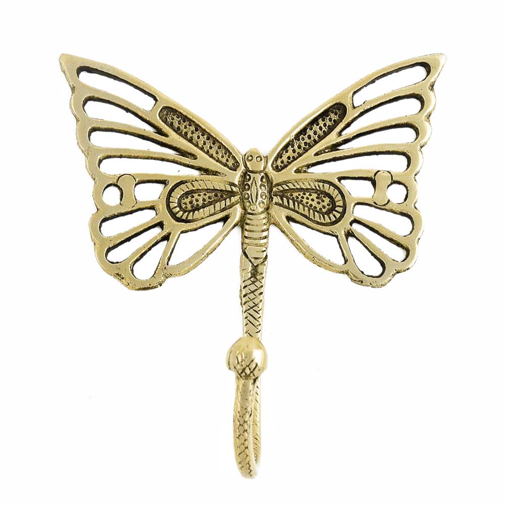 The handcrafted butterfly motif on this wall hook introduces a whimsical, nature-inspired charm to any room. The golden brass finish elevates its elegance, making it a perfect fit for various interior styles, from contemporary to vintage.