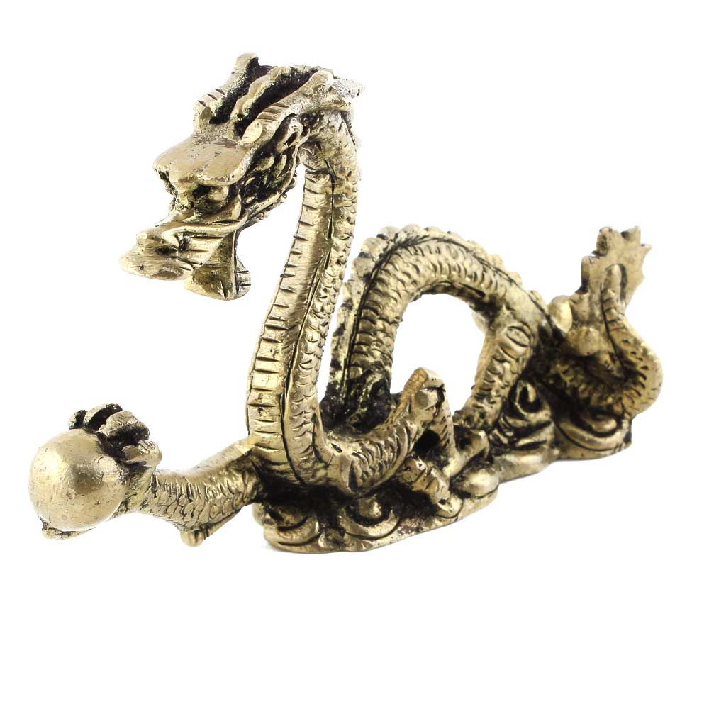Handmade golden brass dragon statue holding a ball is made by skilled artisans using best quality metal. Place it in the empty corners of your living room or office desk, showpiece, good luck statue used for gifting friends and relatives.