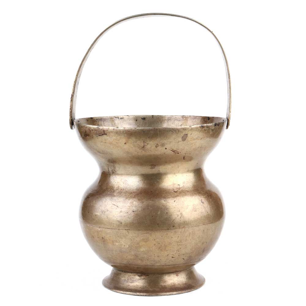 Brass Kamandal Holy Water Pot with Handle used for cleaning temple stairs to bathe god and goddess, it is also filled with holy water and flower offered to god.