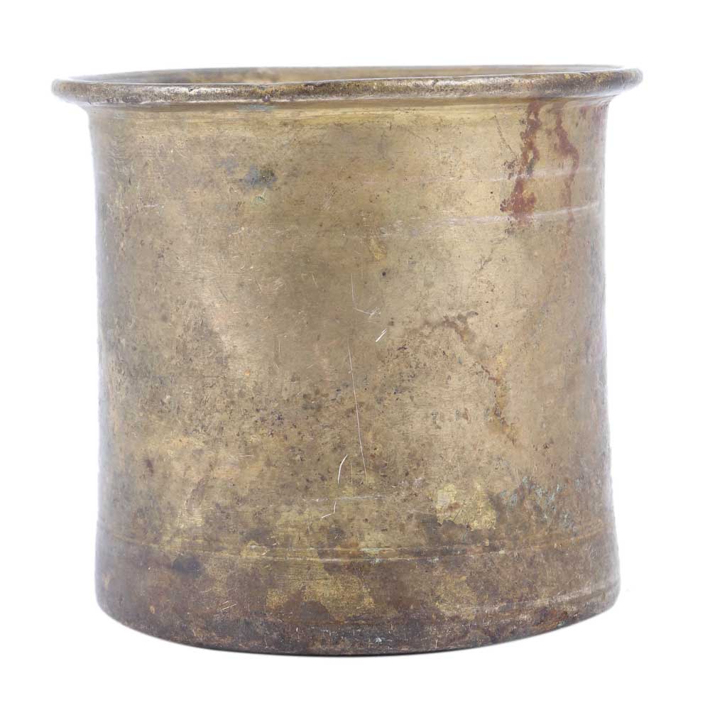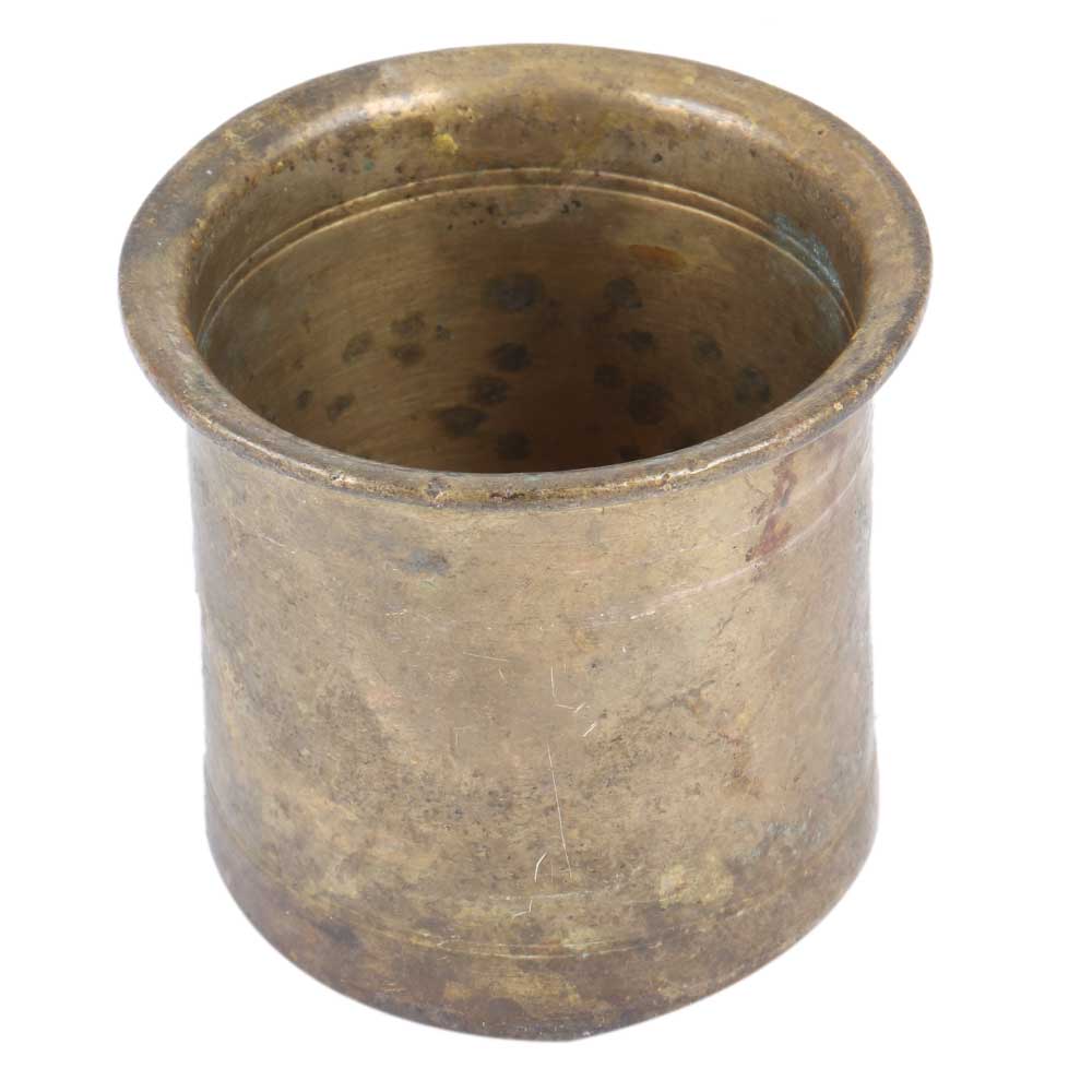 Handmade old brass panchpatra cup in traditional design can be used in temples during religious ceremonies and Havan. Use it for home and office decoration, as a showpiece on the study table.