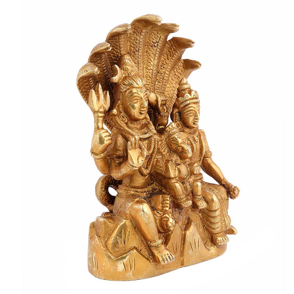 This Golden Brass Lord Shiva Parvati and Ganesha Murti Shiv Parivar family idol statue is used for home decoration, Mandir, Temple, Diwali puja, birthday gift and office desk.