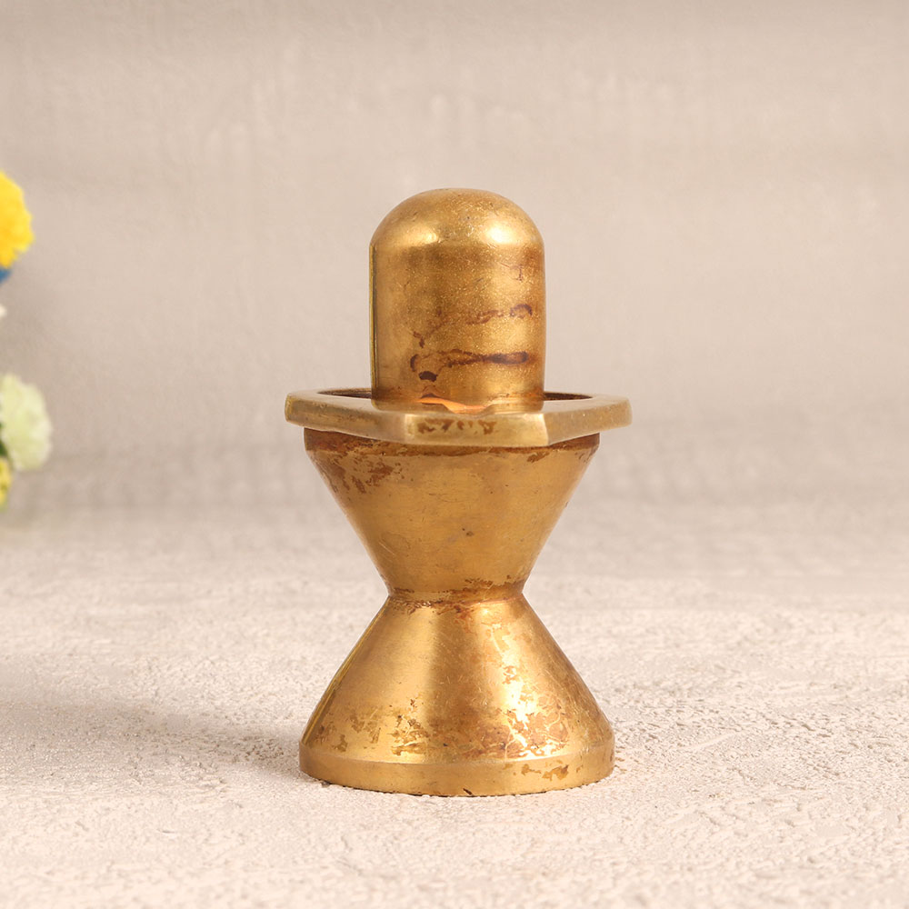 A Brass Shivling with an antique golden finish that is a true masterpiece meticulously crafted by skilled Indian artisans. This stunning piece is not only a symbol of divinity but also a work of art that exudes timeless elegance. Crafted with utmost precision and passion, this Shivling is made from high-quality brass, known for its durability and captivating shine. The antique golden finish lends an air of vintage charm, making it the perfect addition to your home, office, hotel, cafe, shop, or restaurant prayer room. This versatile creation serves both spiritual and aesthetic purposes. It embodies a sacred symbol for worship and meditation, while its intricate design and antique finish make it a captivating decorative element. Elevate your interior decor by including it in your vintage collection or showcase it at exhibitions to inspire admiration. As a token of love and blessings, this Brass Shivling is a thoughtful gift for your family, friends or relatives during special, festive, or auspicious occasions. Share the divine beauty of Indian craftsmanship with this exquisite artefact, destined to be cherished for generations to come.