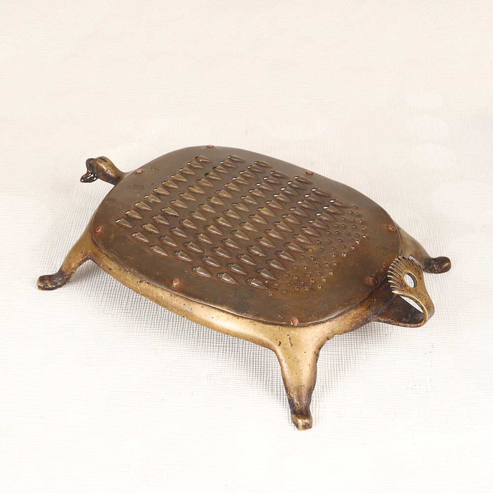 Step into a vintage kitchen with this antique brass vegetable grater from Gujarat Art. Lovingly aged and distressed, this decorative piece adds instant old-world charm. Though purely decorative now, its intricate detailing and patina of age tell a story of meals past and the many hands that have touched it. Display in your kitchen or dining room to infuse your space with nostalgic style. Design enthusiasts and antique lovers will appreciate this unique conversation piece. Its vintage aesthetic provides an elegant touch of days gone by. Though no longer functional, this antique vegetable grater remains full of artistry, history, and charm. A distinctive gift for any vintage decor admirer.