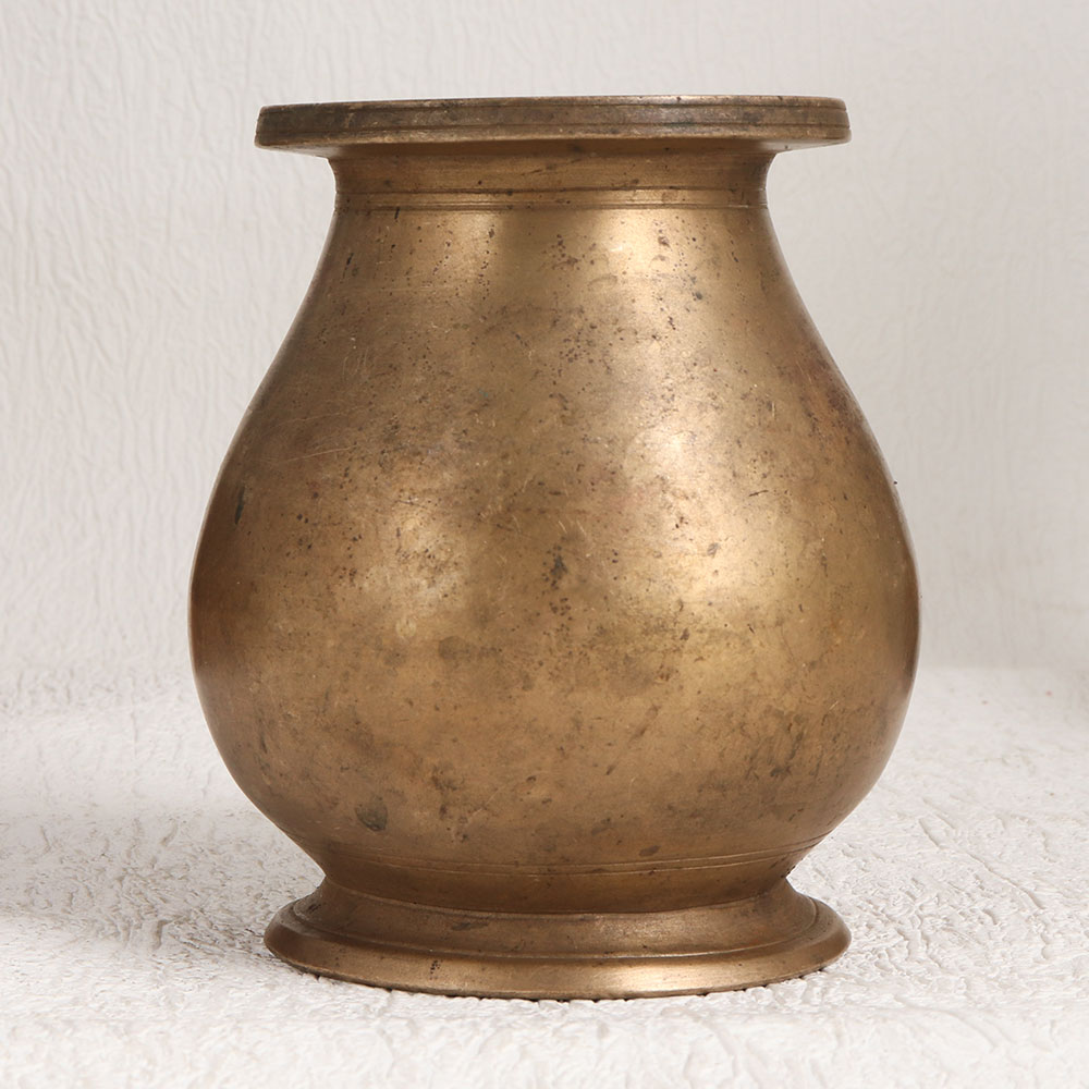 Enhance your surroundings with the timeless charm of our Vintage Brass Holy Water Pot that is a testament to Indian craftsmanship and artistry. Handcrafted by highly skilled artisans in South India, this exquisite piece showcases a rich antique brown finish that exudes a sense of history and tradition. Crafted from high-quality brass, this holy water pot serves a multitude of purposes. It can be a stunning addition to your home, office, restaurant, hotel, cafe, or shop, adding an aura of spiritual grace and vintage allure. During religious ceremonies, it functions as a vessel to hold holy water, enhancing the sacred ambiance. In temples, it finds its place as an essential tool for prayer and worship. Placing it in the north direction of a room filled with water is believed to radiate positive energy and spiritual harmony. This beautifully crafted pot is a collector's delight and can be a captivating addition to your vintage collection or exhibition display. It also makes for a thoughtful and auspicious gift for your family, friends or relatives on special occasions, festivals, or moments of significance. Embrace the elegance of tradition and spirituality with our Vintage Brass Holy Water Pot.
