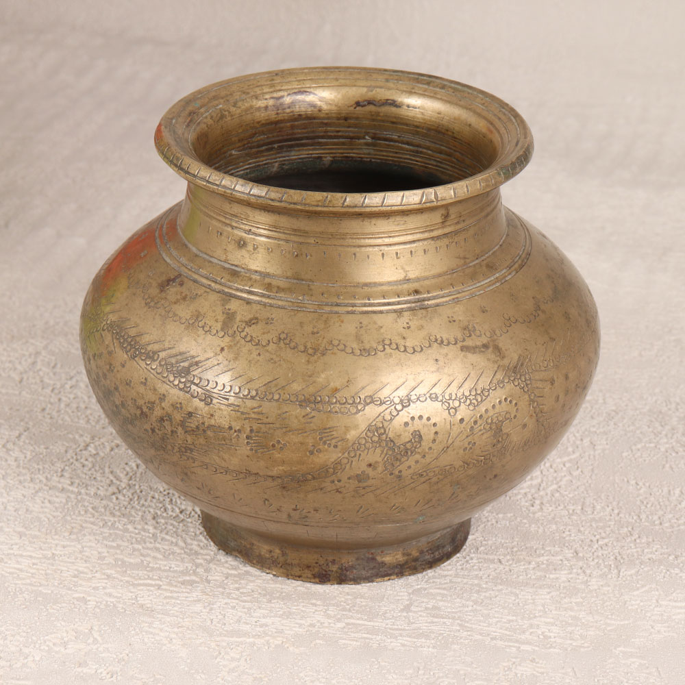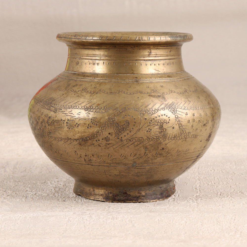 Add a touch of timeless elegance to your sacred space with our Vintage Brass Holy Water Pot from the artisans of Himachal. Meticulously crafted by professional Indian artisans, this lota showcases intricate carvings that reflect the rich cultural heritage of the region. The antique brown finish exudes a warm, rustic charm, adding a sense of antiquity to your prayer rituals, havans, and auspicious ceremonies. Handmade with precision from high-quality Brass, this holy water pot is a testament to craftsmanship and devotion. Its versatile design allows it to hold holy water during prayers or serve as a stunning base for flower decorations. The pot seamlessly transitions from sacred rituals to a captivating decorative piece, suitable for any home, office, restaurant, hotel, or cafe. Embrace the cultural essence and make it a cherished addition to your vintage collection or present it as a thoughtful gift to your family, friends or relatives on special, festive, or auspicious occasions. Let this vintage masterpiece be a symbol of spirituality and artistic finesse in your space.