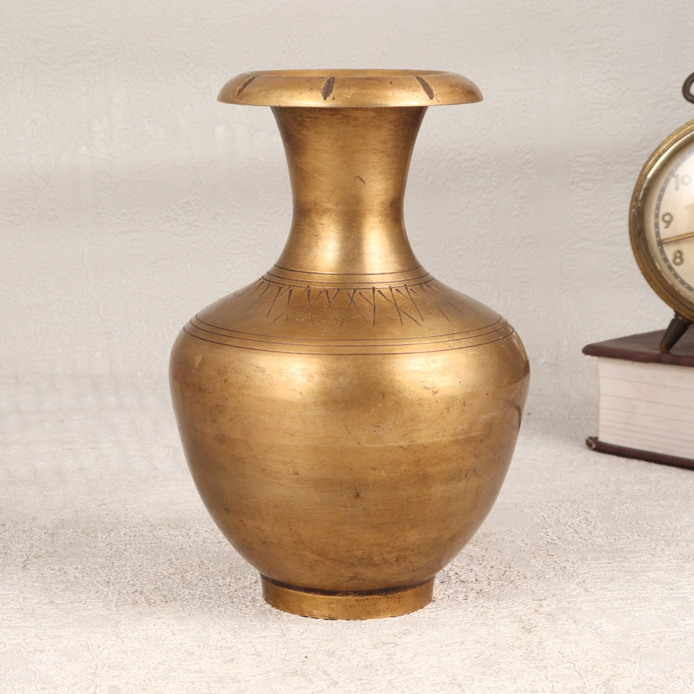Immerse your living space in the timeless allure of the Vintage Brass Flower Pot that is an exquisite piece crafted by skilled Indian artisans in the revered Himalayan art tradition. This flower pot boasts a rich antique brown finish, adding a touch of warmth and nostalgia to any environment. Handmade with precision and passion, it epitomizes the artistry and craftsmanship honed over generations. Forged from high-quality brass, this flower pot is more than a mere decorative item, it's a testament to the heritage of Indian craftsmanship. Its ornate design and unique vintage charm make it a versatile addition suitable for homes, offices, restaurants, hotels, or cafes. Transform your surroundings with the grace of this indoor flower pot, creating an ambiance that resonates with history and elegance. Beyond its aesthetic appeal, the Vintage Brass Flower Pot is an ideal addition to any vintage collection. Embrace the opportunity to curate your space with a piece that transcends time. As a thoughtful and meaningful gift, this flower pot is perfect for expressing love and good wishes on special, festive, or auspicious occasions. Elevate your decor with a touch of tradition and sophistication, celebrating the enduring legacy of Himalayan craftsmanship.
