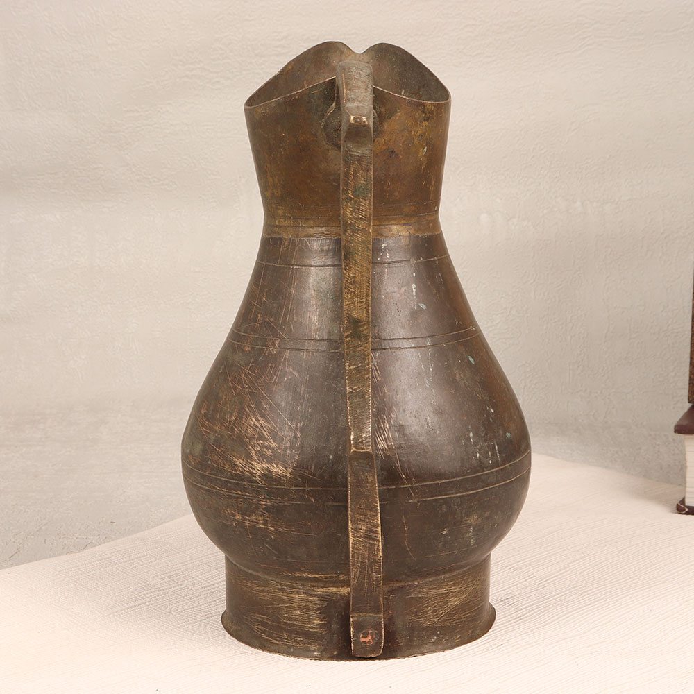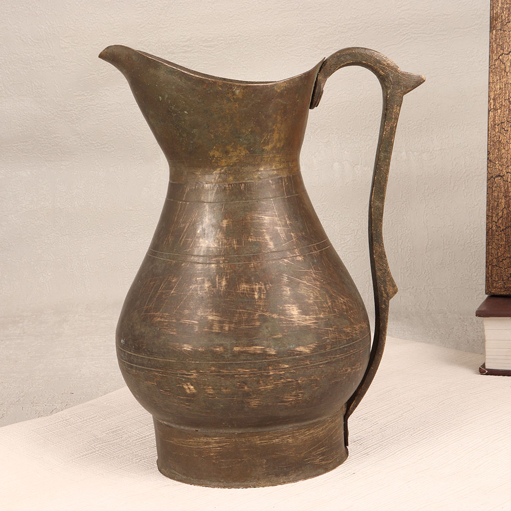 Decorate your home with the timeless charm of our Vintage Brass Jug that is a masterpiece meticulously crafted by professional Indian artisans in the Himalayan Art tradition. This exquisite piece seamlessly combines functionality with aesthetic appeal, featuring a graceful handle and an antique brown finish that exudes sophistication. Handmade from high-quality brass, each jug is a testament to the artistry and craftsmanship that has been passed down through generations. The rich, warm tones of the antique brown finish add a touch of nostalgia, making it a perfect addition to any home, office, restaurant, hotel, or cafe seeking a touch of vintage elegance. This versatile piece serves as more than just a decorative item, it can double as a unique flower pot, breathing life and nature into your space. Its versatility extends to becoming a standout piece in any vintage collection, showcasing the historical and cultural significance of Himalayan craftsmanship. Whether as a personal indulgence or a thoughtful gift, this Vintage Brass Jug is ideal for special, festive, or auspicious occasions. Share the gift of timeless beauty with your family, friends or relatives, as this jug captures the essence of tradition and artistry, making it a treasured addition to any environment.
