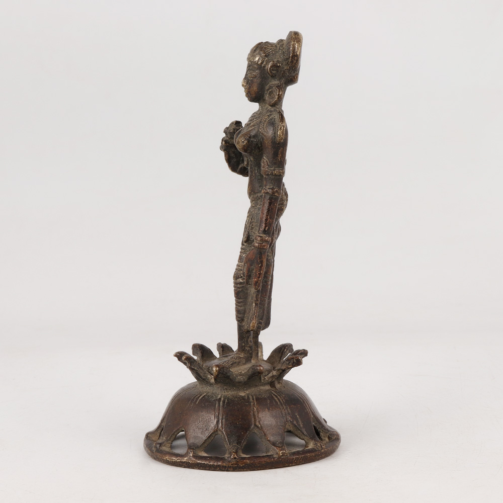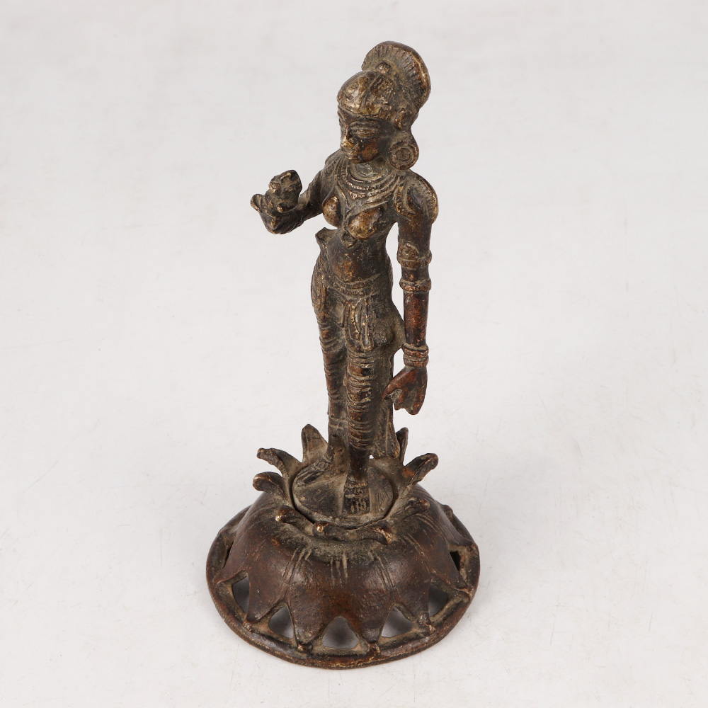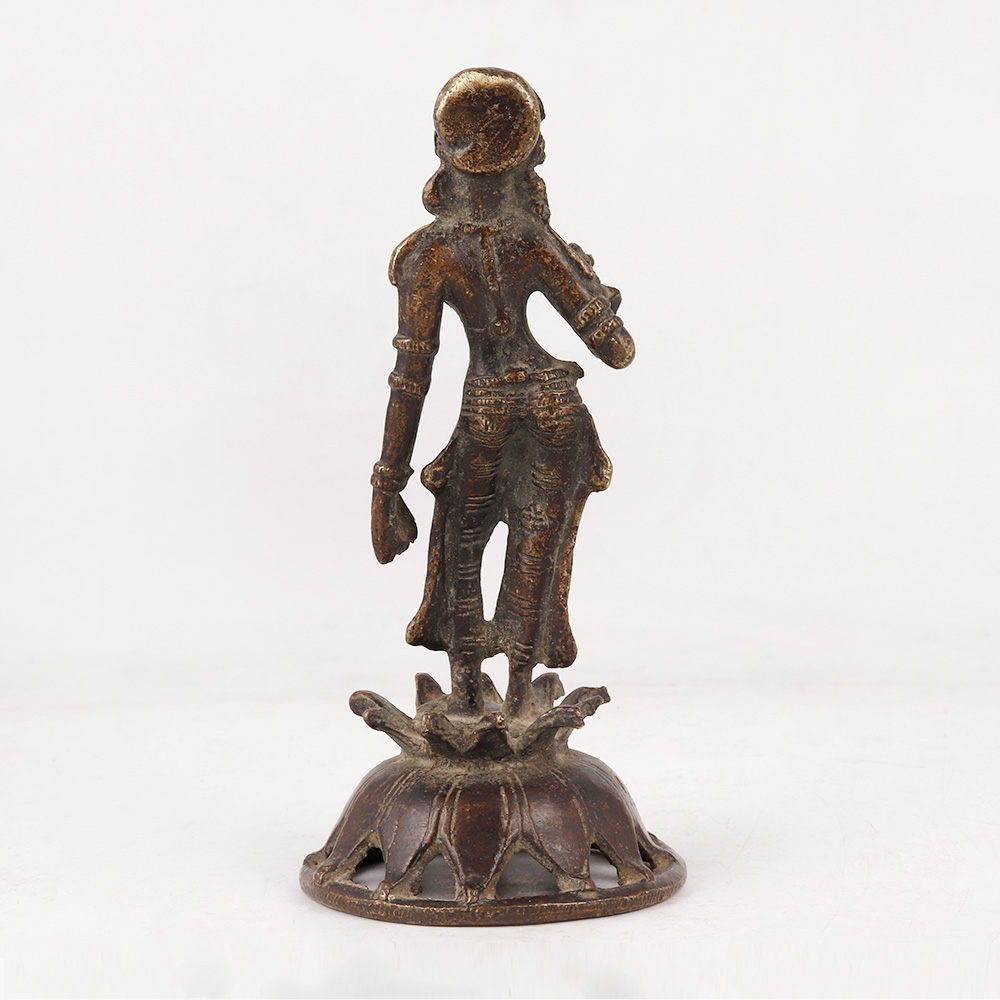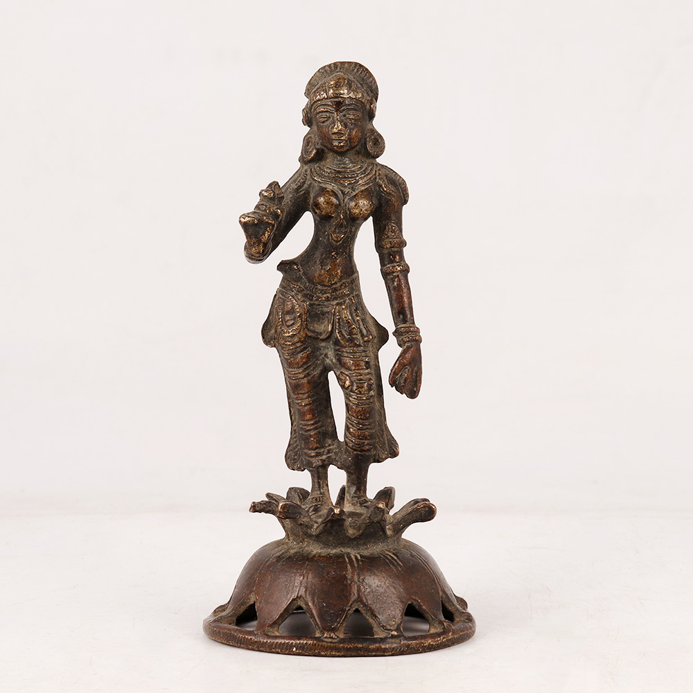 Experience the divine presence of Goddess Parvati with this brass statue that encapsulates the essence of South Indian Art. Standing gracefully on a delicately crafted flower platform, this magnificent sculpture radiates a sense of timeless beauty. Meticulously handmade by skilled Indian artisans, each detail is carefully rendered, making it a true masterpiece. The antique dark finish adds a touch of antiquity, evoking a sense of reverence and mystique. Crafted from high-quality brass, the statue is not only visually stunning but also durable, ensuring it will be cherished for generations to come. Versatile in its use, this Goddess Parvati statue is perfect for adorning your home, office, restaurant, hotel, cafe, or shop prayer room. It serves not only as an object of worship but also as an elegant decoration or valuable addition to any collection. Embrace the spirit of generosity by presenting this statue as an auspicious gift to your loved ones on their special, festive, or auspicious occasions. Let the divine blessings of Goddess Parvati shower upon them, filling their lives with prosperity and happiness.