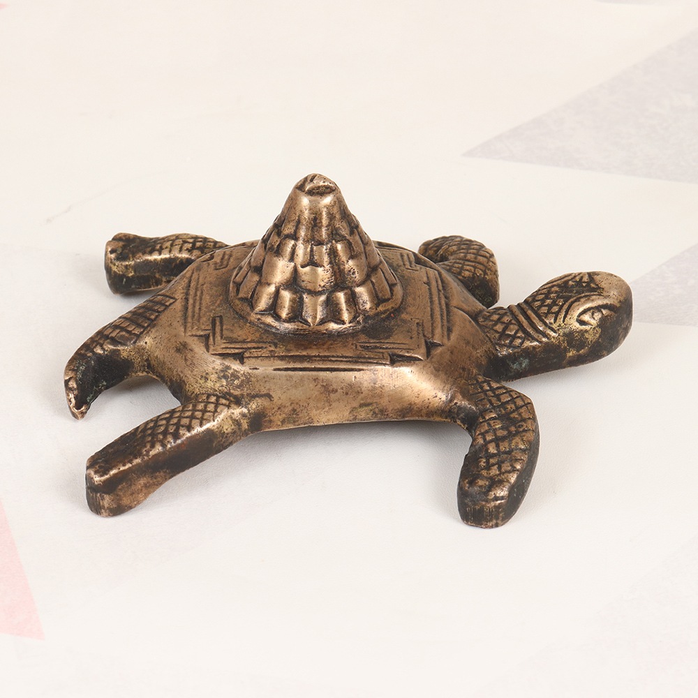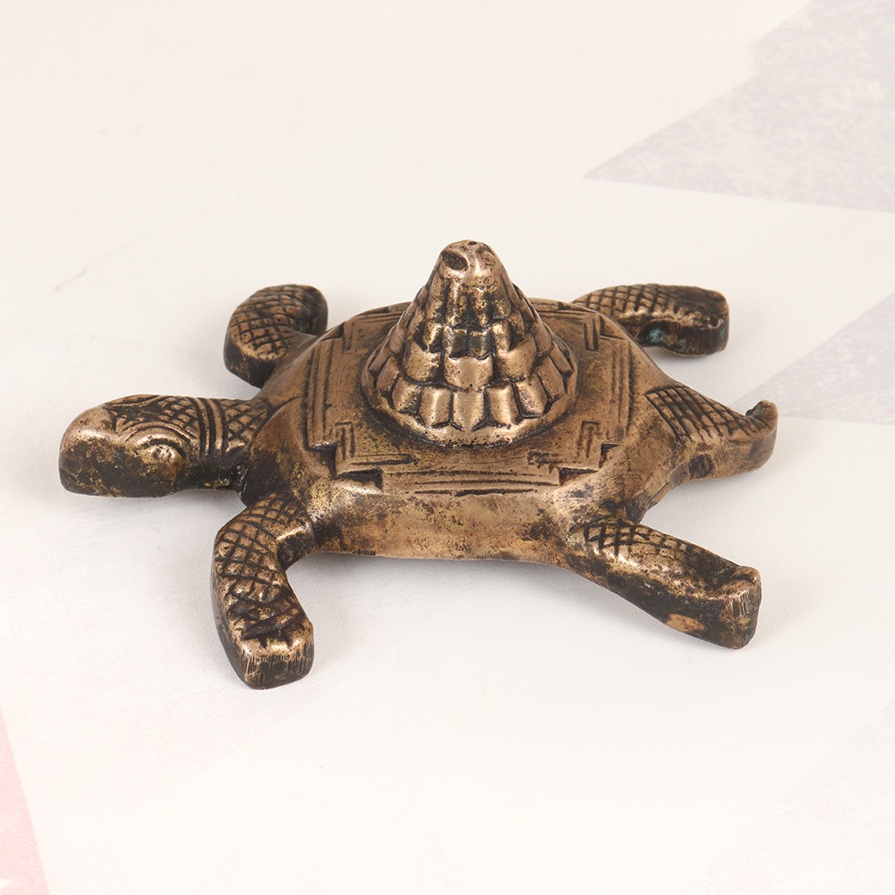 Immerse yourself in the captivating energy of the Lakshmi Turtle Yantra, a stunning piece of vintage brass craftsmanship that combines ancient spiritual symbolism with timeless artistry. Featuring the revered goddess Lakshmi seated atop a turtle, this exquisite yantra is a powerful talisman for attracting abundance, prosperity, and good fortune into your life. The turtle, a symbol of longevity and stability, represents the steady, grounded foundation upon which Lakshmi's blessings can take root and flourish. By welcoming this magnificent yantra into your sacred space or home, you invite the goddess's divine grace to permeate your surroundings, uplifting your spirit and aligning you with the flow of wealth, luck, and spiritual growth. Whether you choose to use the Lakshmi Turtle Yantra for meditation, place it on your altar, or display it as a captivating work of art, its mesmerizing design and high-quality craftsmanship will elevate the energy of any space, infusing it with the positive vibrations of Lakshmi's benevolent presence.