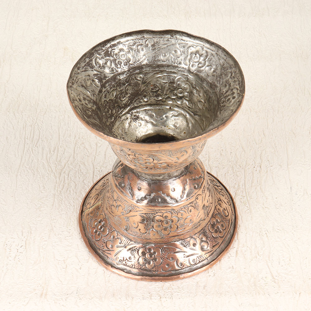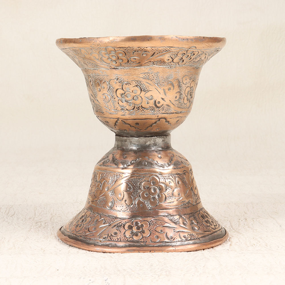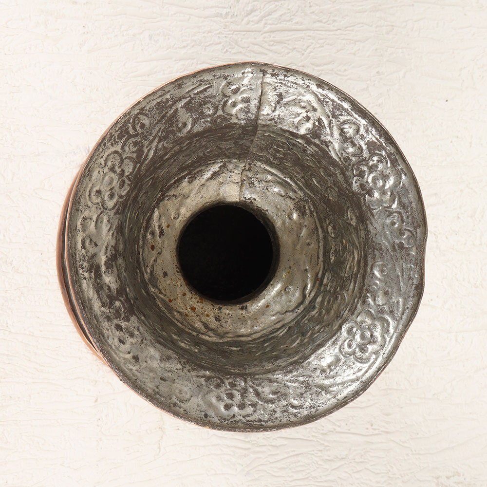 Beauty blooms in this antique engraved copper flower pot. Featuring exquisite Islamic floral engravings, this pot will add artisanal charm to any space. This mesmerizing flower pot is an antique work of art. The delicate yet detailed engraving is done using techniques passed down through generations of artisans. Place your favorite flowers in this pot to display their beauty against the warm, vintage copper. For those looking to accent their home with old-world charm, this hand-engraved copper pot makes a stunning statement. The intricate Islamic engravings will impress your guests and become a treasured home accessory. Bring artisanal beauty to your decor with this antique engraved copper flower pot.