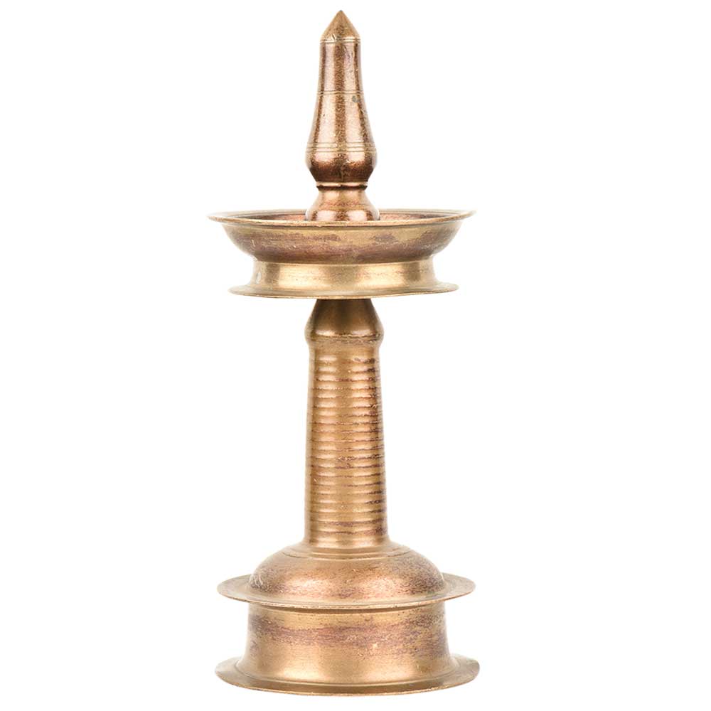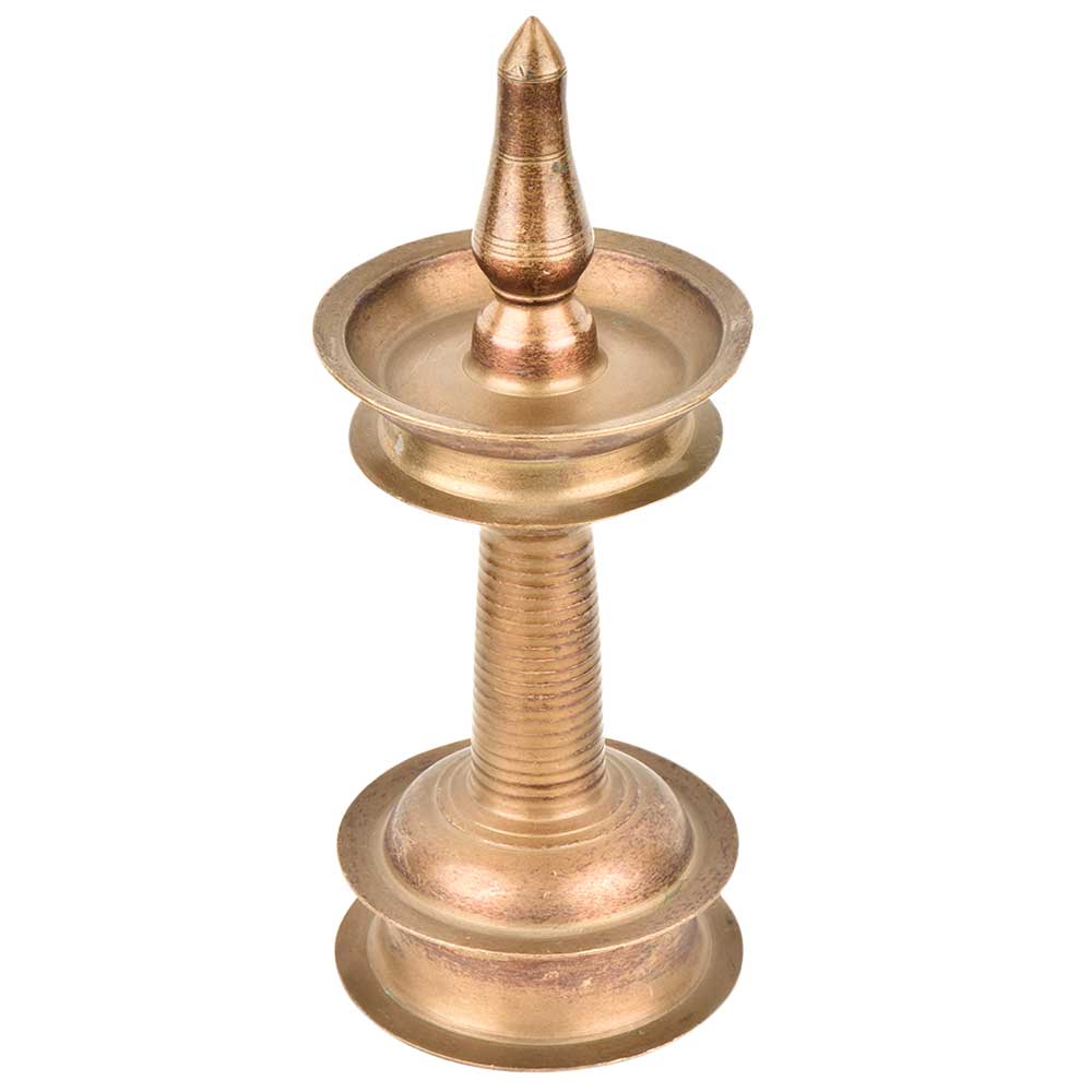 Kerala Nilavilakku Brass Oil Lamp. It Was Made by Lost Wax Process. Adds Spiritual Flavor to Your Decor. Vegetable Oil, Mustard Oil or Desi Ghee can be Use to Light the Lamp with Cotton Wicks.