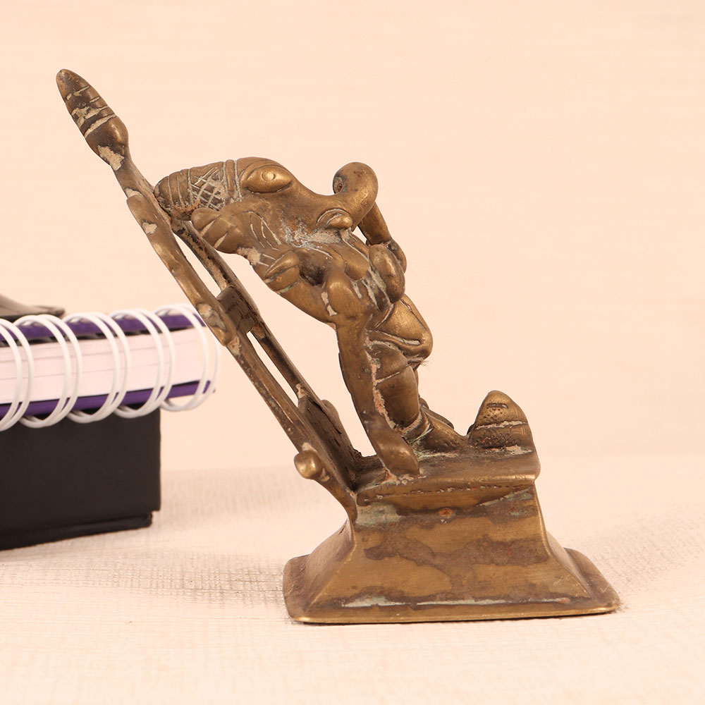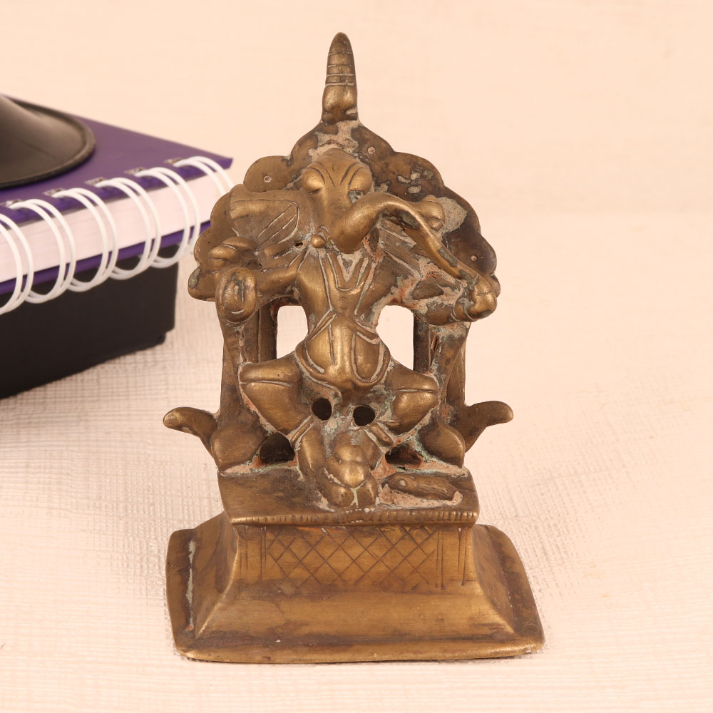 Buy a Brass Statue of Lord Ganesha online from our website and get a hassle free delivery. Crafted with precision and devotion by highly talented Indian artisans from Himalayan Art, this exquisite masterpiece exudes an aura of antique elegance. Lord Ganesha, the revered deity of wisdom, prosperity, and obstacle removal, is seated gracefully with a Lingam placed in front of him. His divine presence embodies strength, intellect, and the ability to overcome life's hurdles. The statue, with its rich antique brown finish, adds a touch of rustic allure, making it perfect for a variety of settings. Whether it's your home, office, restaurant, hotel, cafe, or shop's prayer room, this statue seamlessly blends spirituality with aesthetics. Its versatile appeal allows it to become the focal point of worship or a striking decorative piece. For collectors, it's a treasure to add to your vintage collection, while as a thoughtful gift, it carries blessings and positive energy for your family, friends or relatives on special, festive, or auspicious occasions. Bring home this exquisite Lord Ganesha statue and embrace the divine in timeless style.