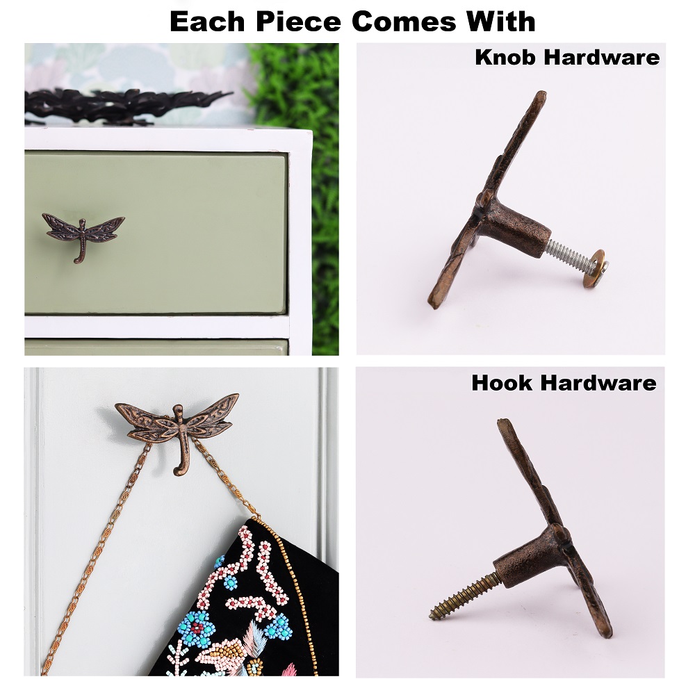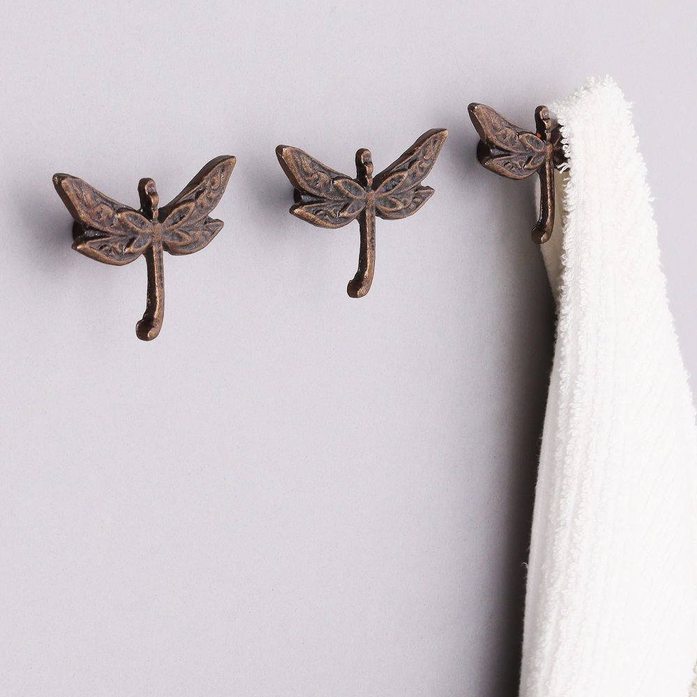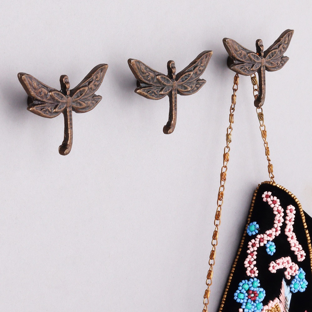 Antique Dragonfly Iron Wall Hooks-3 Pieces. This Hook is Strong Enough to Hold Your Bags, Hand Towels, Cloths Etc.