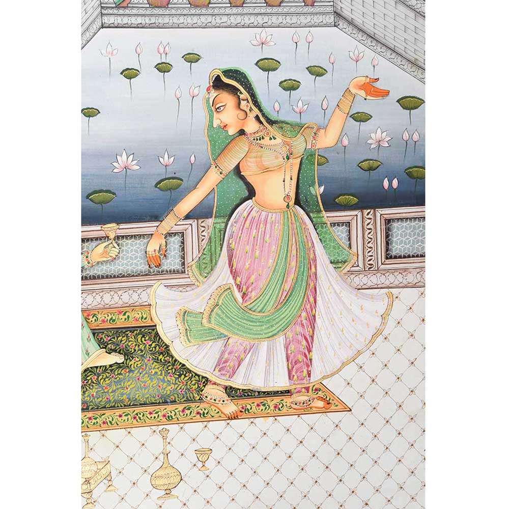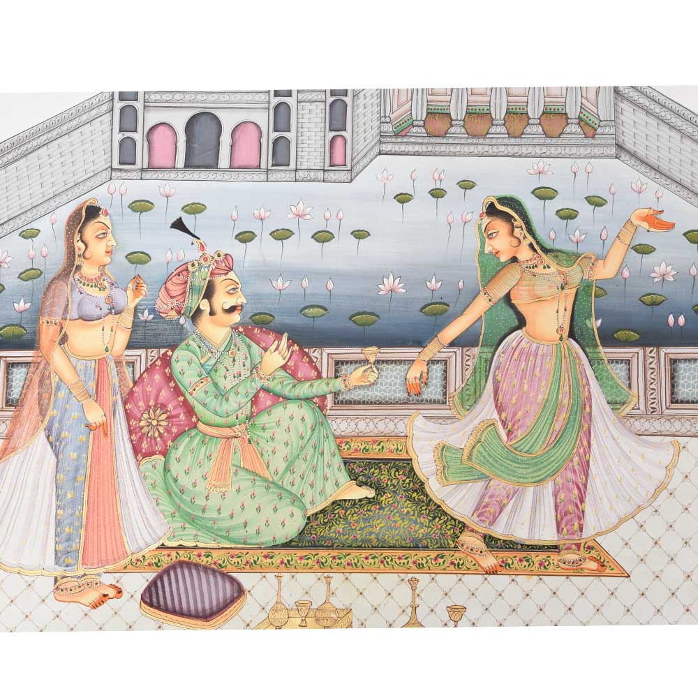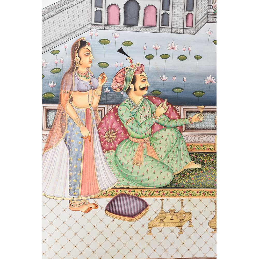 This is an astonishing handmade picturesque with details of a harem scene. The vibrant colours and theme add an exotic flair to the walls of your home, restaurant, or office.