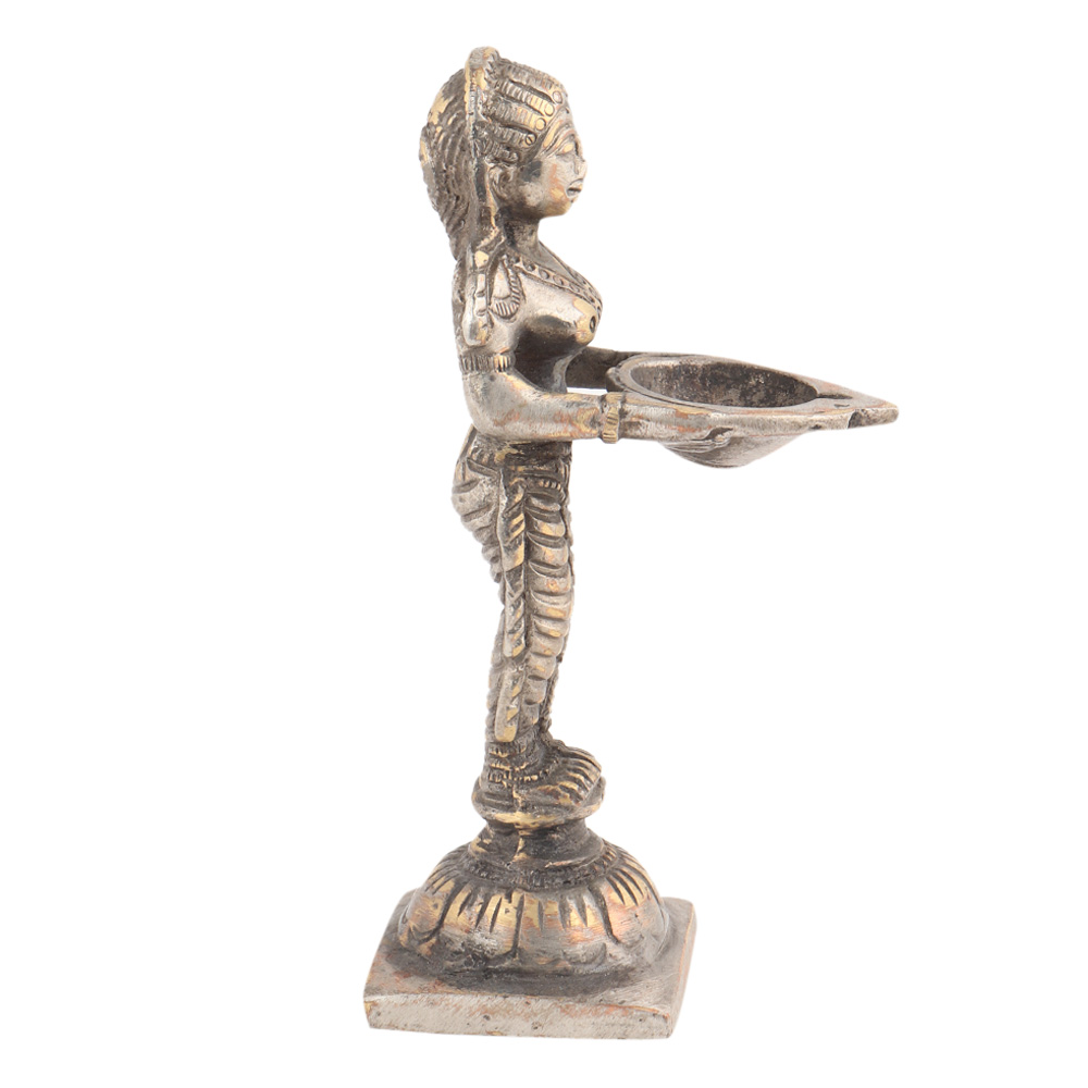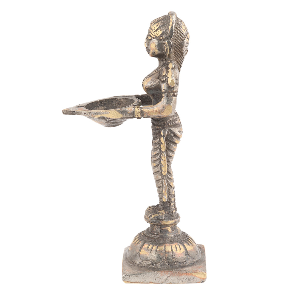 This classic brass dancing lady statue holding a diya made by expert artisans comes in a raw antique finish. You can gift this statue at anniversaries, weddings, thanksgiving, Diwali, or other religious functions.